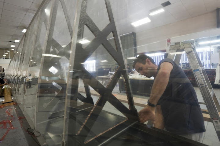 La plataforma del primer AC45 ya está en el Viaduct Basin, para ser ensamblada y botada