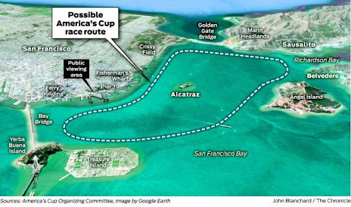 Acaban de publicar las primeras fotos de la plataforma del AC45 ensamblada, y del elemento principal del ala, que ya muestra la pinta que tiene: http://www.americascupmedia.com/inde...olioID=52&co=1 Y aquí un primer esbozo del posible recorrido, una vuelta cerca de la costa, para animar a los espectadores. Habrá que ver en qué queda... http://lh4.ggpht.com/_E02Vc6phd5M/TS...1294460531.jpg |