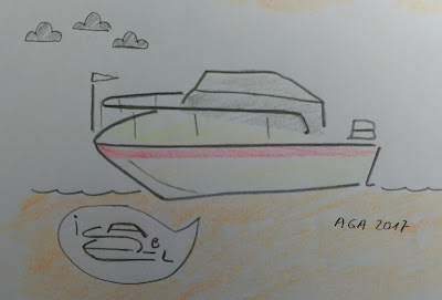 Dibufirma de la motora Rio 500 "ISABEL". El nombre le viene como anillo al dedo, la verdad es que hay barcos que parecen haber sido diseñados para llevar su nombre. A veces dudo si el comprador tuvo una visión subliminal del nombre con el que le bautizaría, o bien que llevaba el nombre en la cabeza y se decidió por el modelo de barco que encajaba en ese nombre. Las dibufirmas también se usan en la política. Podéis ver un ejemplo en mi blog. |