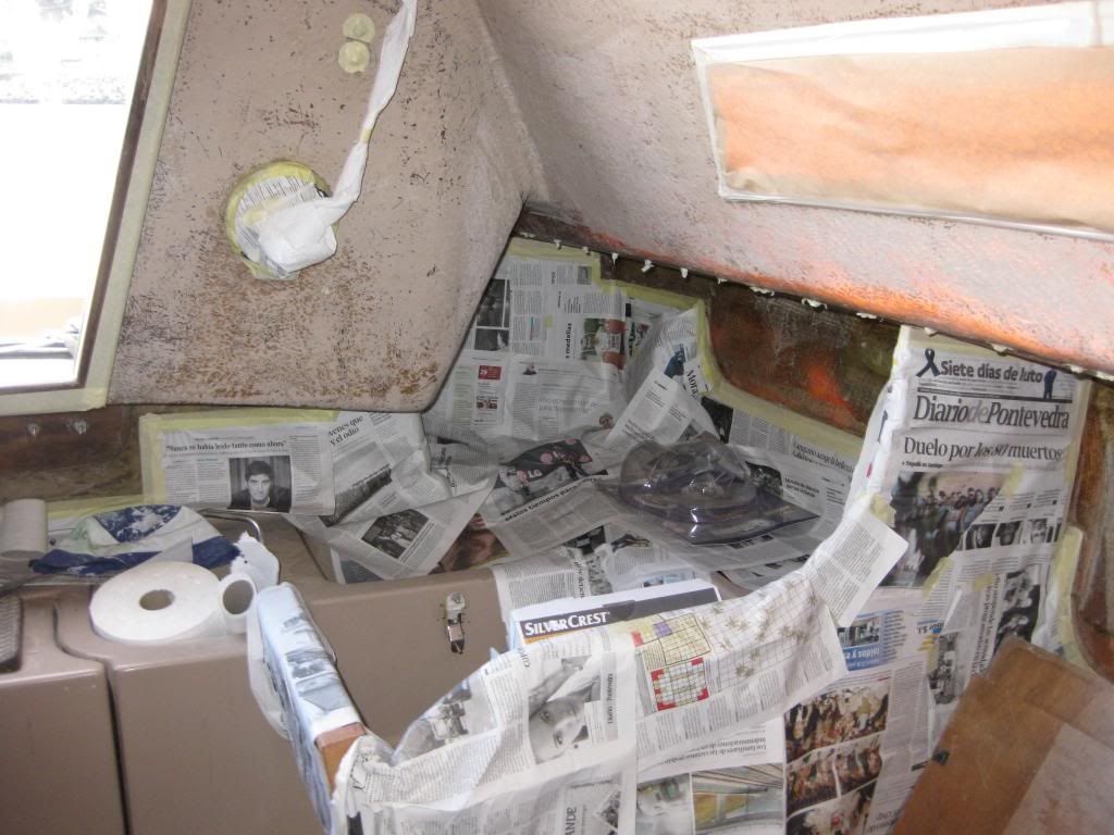 http://i256.photobucket.com/albums/h...pscfc711e3.jpg http://i256.photobucket.com/albums/h...ps0f462940.jpg Un día que estaba sólo se me ocurrió echar a mi el catalizador según lo hacía mi primo, resultado 4 días en secar la pintura, lo debí de mezclar mal con la espátula :cagoento:...son esas zonas que aún brillaban en el techo de la cabina, los pelos se pegaban al techo :cunao: y claro el bote de acetona ya ni lo cerrabamos ¿para qué?, importante también rollos gigantes de papel de cocina y un paquete de retales de trapos de 5 kg. Nos "dió la vida", para limpiar de restos de silicona, pintura, pegamento etc, barco, cuero cabelludo, manos, piernas :cunao:.... http://i256.photobucket.com/albums/h...ps5cc020d0.jpg http://i256.photobucket.com/albums/h...pscf5062f9.jpg Con el barco pintado, la segunda fase fué el barnizado, a rodillo. 2 capas de tapaporos y 2 de barniz. Antes barrí lo mejor que pude con cepillo y recogedor, polvo del lijado y restos varios...el resultado es bastante decente. Las maderas que se pudieron llevar las barnizó mi primo debajo de un cobertizo abierto, con el resultado de que cuando había nortada y levantaba polvo o tierra se le pegaba al barniz :calavera::calavera::calavera:, en fín esas y otras circunstancias personales hicieron que se alargase el trabajo.... |