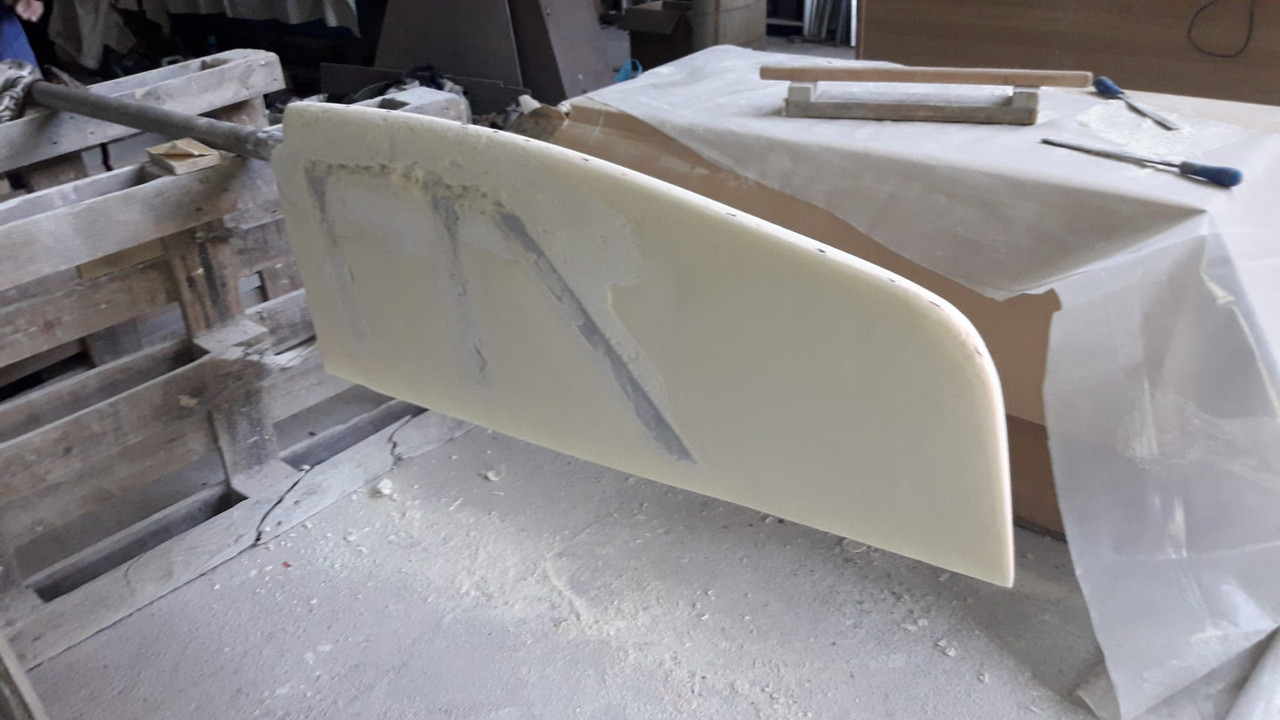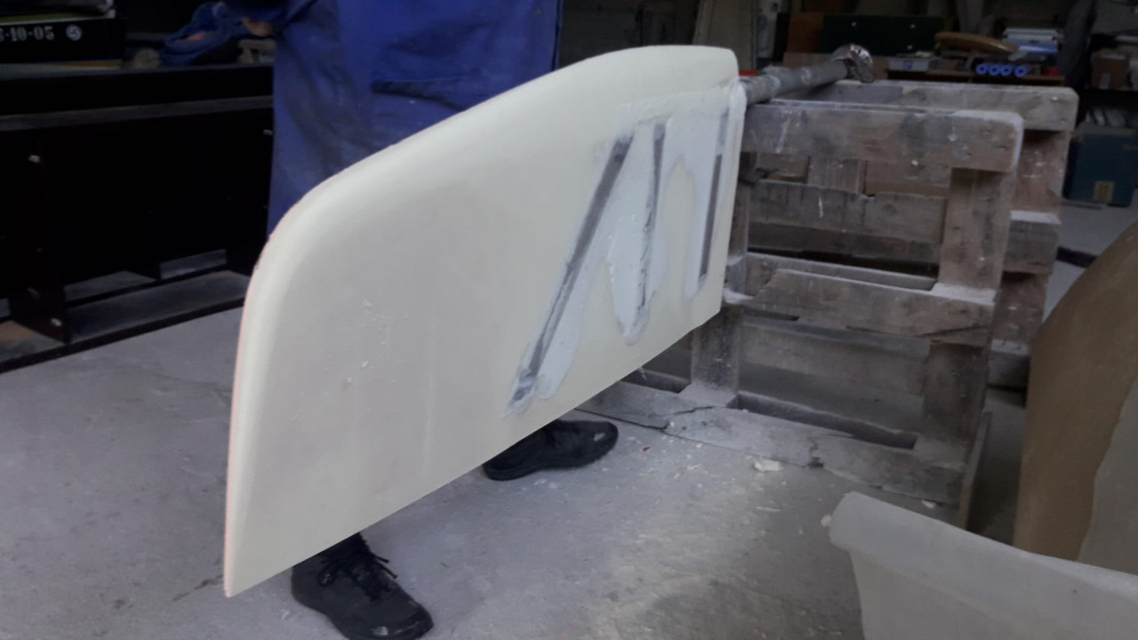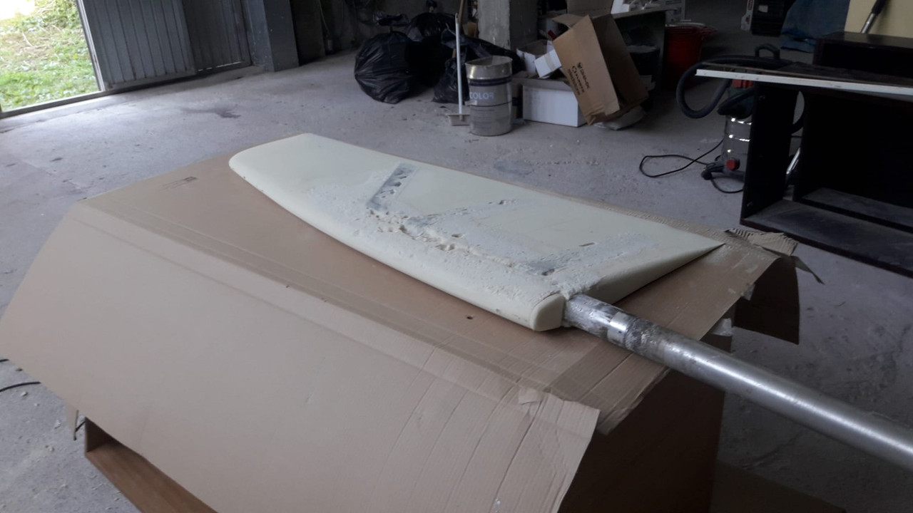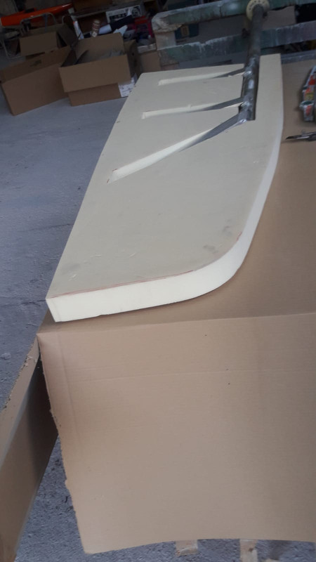 Habíamos solicitado que nos llevaran a Muros, pero la dificultad del remolque sin timón y la baja velocidad que se podía alcanzar hizo que nos llevaran a Fisterra, que eran menos millas. En Fisterra conseguimos sacar la mecha a flote, y es nuestra intención instalar el timón también a flote. Para ello equilibraremos la flotabilidad del timón con unas planchas de espuma solidarias, para que no pese dentro del agua y se pueda manejar sin requerir siquiera equipo de buceo. La base sobre la que laminamos es espuma de poliuretano en plancha, de unos 60 kg/m3, es muy fácil de lijar. :brindis: |