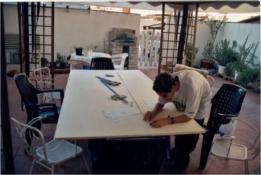En cuanto a dibujar el D5 a tamaño real no tiene mucho problema. Yo lo hice así: Tomas una medida del plano que ya sepas cuanto mide en el barco, por ejemplo 3cm en el plano equivalen a 30 en el barco, divides 30/3=10, ese 10 es la proporción para todas las demá medidas que saques del plano. Una vez que tienes las medidas finales sobre el plano tomas de él medida de cualquier punto y lo multiplicas siempre por la proporción (10 en el ejemplo anterior) para que te la medida sobre la madera y entonces empiezas a trazar varios puntos de cualquier línea. Cuando tienes los suficientes trazas la línea uniendo los puntos, como en el juego. Si es una curva usas un listón flexible o muchos puntos y a mano. Y con eso ya te salen las piezas muy bien. Igualmente siempre necesitarán algún ajuste pero al coserlas juntas también hay márgenes de holguras poco problemáticas. Lo que hay que tener MUY en cuenta antes de hacer el pegado final es comprobar las alineaciones de la vertical en la quilla y las de proa-popa, si no el barco sale torcido y navega escorado o haciendo curvas. Si le vas a dar epoxy del bueno no importa si la madera es mala o no es marina, el epoxy impide totalment el contacto del agua con la madera. Lo que importa es sellarla por todas partes, sobretodo los cantos cortados. Yo no utilicé banco ni moldes ni nada extra. Cosí los costados a la proa y la popa y metí a presión la cuaderna maestra sujeta con clavos desde el exterior. Con eso cogió la forma. Luego cosí los fondos (con hilo de cobre grueso, alambre precintos de plástico y con lo que pille, luego queda aislado debajo de la masilla y ni se ve ni se oxida). Hacer las alineaciones con unas cuerdas y unos pesos y..... ¡a pegaaaaar!. Después tejido de fibra a las uniones por dentro y por fuera y nunas capas de epoxy y el casco ya está. Luego pondré algunas fotos. :brindis::brindis::brindis: |