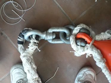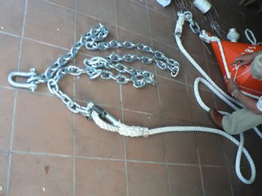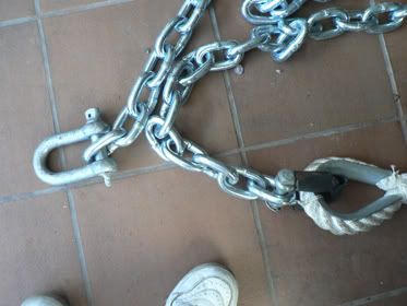 Creo necesario repetir que la cadena no es lo mejor para un muerto. Más seguro es una buena estacha de nylon con guardacabo y quitavueltas abajo y una gaza arriba, pero tu mismo.