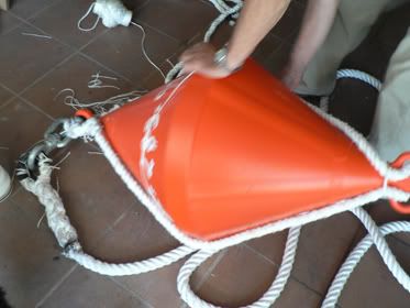 http://i256.photobucket.com/albums/h...008/muerto.jpg http://i256.photobucket.com/albums/h...8/P1030709.jpg http://i256.photobucket.com/albums/h...8/P1030711.jpg Esto es lo que hice con ayuda de mi suegro. Llevé a un ferreiro los grilletes para que le hiciese un agujero a cada uno. Le pasé una barrita de inox. la doble a martillazos y la soldé para que hubiese garantías de el pasador no se abre. Es de galvanizado...prefiero que se oxide. El muerto pesa una TM. más o menos 60x60x60 cm. Le puse sobre 4 mt de cadena. Cuando hay temporal duermo mal. Todavía no me han robado nada. Toco madera. Lo peor es cuando salgo a navegar en verano y veo que los que vienen a fondear van directamente a mi boya, aunque hasta ahora siempre la encontré vacia...¿qué pasará el día que llegue al atardecer y me encuentre un yate fondeado sin tripulación?...:nosabo: |