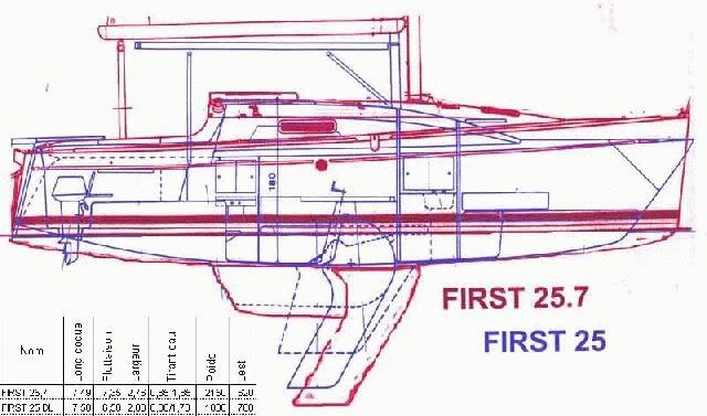 Acabo de leer esto sobre los First 25. Según parece en este foro están intentando crear un Club por internet de este yate. Bueno, también ponen un dibujo muy interesante sobre el perfil de First 25.7 y el First 25. La verdad es que son muy semejantes, ¡quien lo hubiera dicho!. Lo he extraido de aquí: