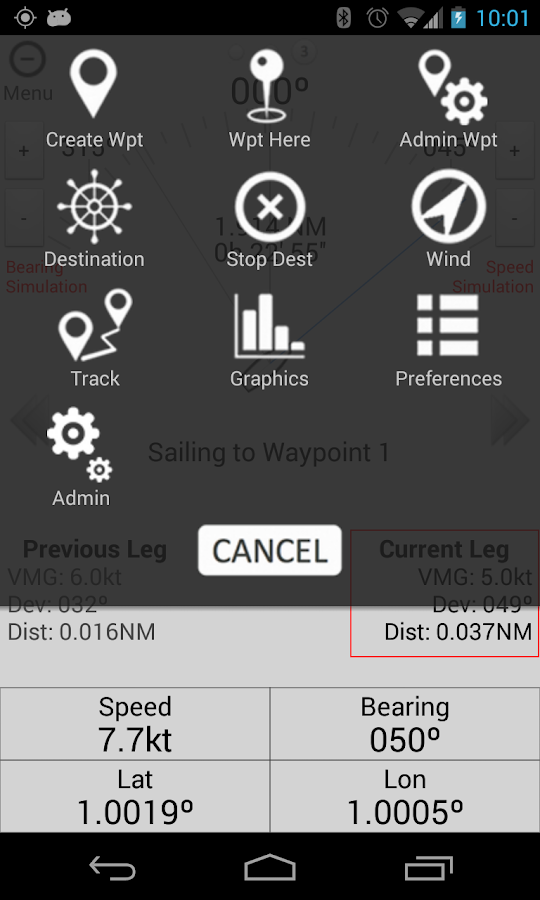 He añadido Modo Zoom, indicadores de gran tamaño y cronómetro de carrera, con botones para: -> Start / Stop: Iniciar o detener el crono -> Sync / Reset: Sincronizar el crono al minuto más cercano o Cambiar a minuto inicial -> Minuto + / -: Sumar o restar minutos de la cuenta atrás https://lh5.ggpht.com/2NIZZUKDjoSseS...fZXfi6ETvvvh8E Ya esta corregido el error de entrada de coordenadas con decimales en los segundos. A ver si encuentro un poquito de tiempo y monto el Time To Line (TTL)para la salida integrado con el cronómetro y lo dejamos nikelau :D:D:D Buenos vientos! Nautka |