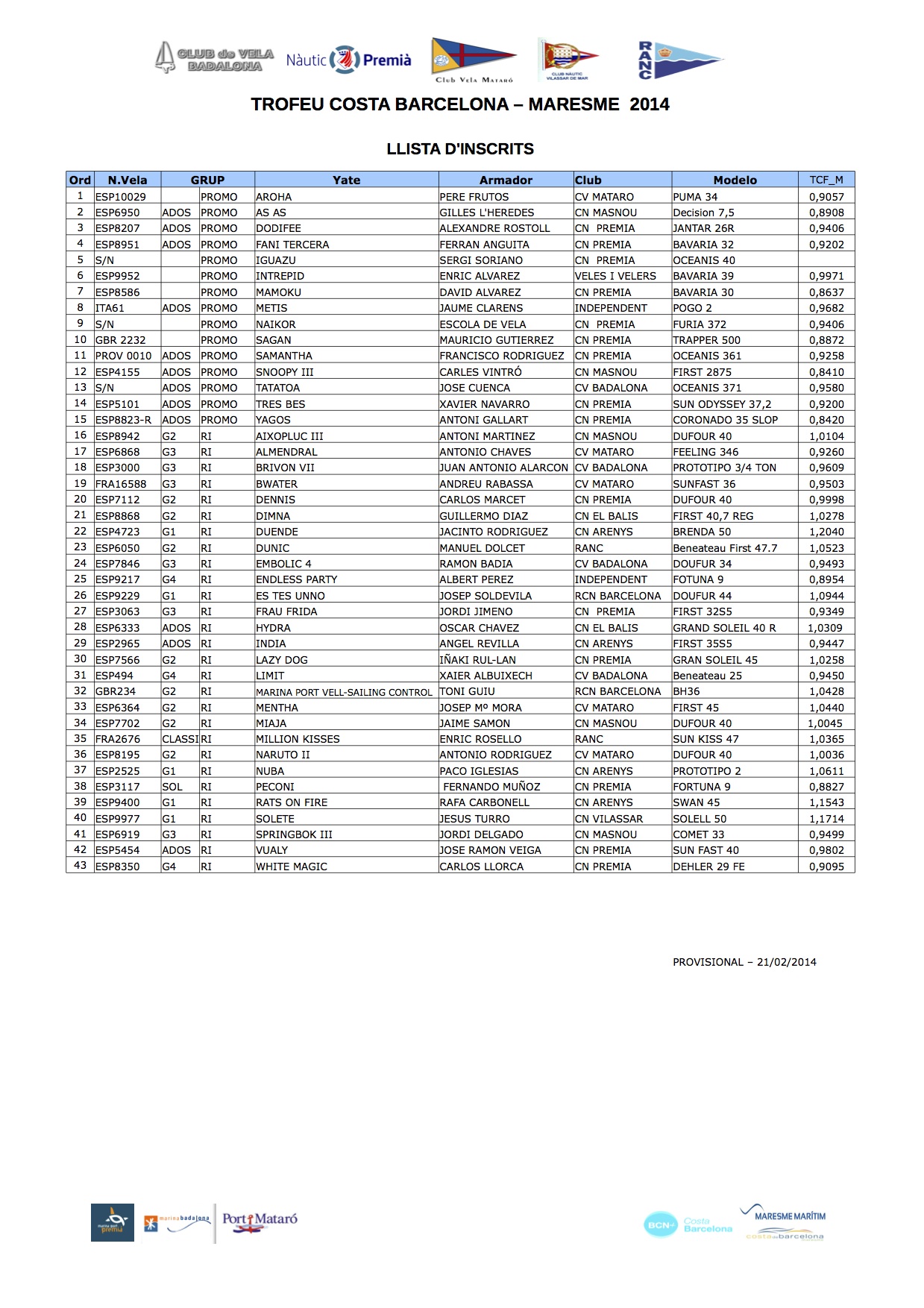 Respuesta: Re: I Trofeu Costa Barcelona-Maresme