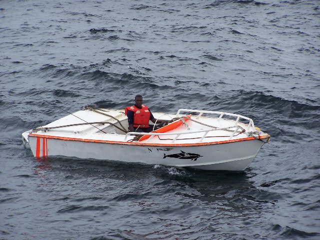 Estando yo de vacaciones en el 82 mi barco tuvo avería de motor en la costa de Angola y como había levantado mogollón de listado en sergueras nadie quiso cogerle de remolque. Pusieron a bordo de la panga el compás del equipo de salvamento, cargaron el tanque de gasoil a tope, aquella panga metía 4.500 Lts y tenía un Caterpillar de 525 Cv, una panga de 11x6 y 42 Tm de peso.