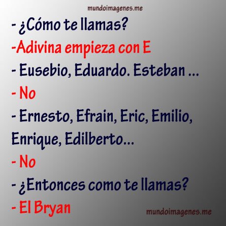 Un padre Amish y su hijo de 35 años llegaron a un centro comercial. Estaban maravillados con casi todo lo que veían, pero especialmente con dos paredes brillantes y plateadas que se abrían y cerraban constantemente. El hijo preguntó: -qué es eso padre? El padre, que nunca había visto un ascensor, respondió: +Hijo, nunca he visto nada igual en mi vida. No sé lo que es. Mientras ambos miraban asombrados, una señora gorda y vieja en silla de ruedas se dirigió a las paredes brillantes y presionó un botón. Las paredes se abrieron y la mujer ingresó a un pequeño cuarto. Las paredes se cerraron y padre e hijo observaron que se encendían alternadamente unos números ubicados encima de las paredes. Siguieron mirando hasta que se encendió el último número y, luego, los números comenzaron a encenderse al revés. Finalmente, las paredes se abrieron nuevamente y una rubia espectacular de 24 años salió del ascensor. El padre, sin quitar sus ojos de la joven, dijo bajito a su hijo: +Ve a casa corriendo y trae a tu madre!!!! Enviado desde mi SM-N960F mediante Tapatalk |