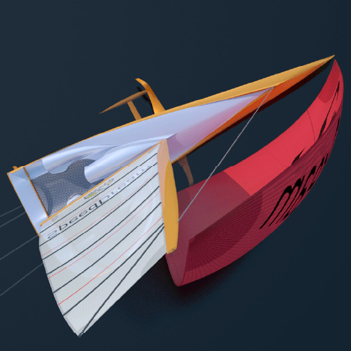 Y Esto es lo que comente. Pues no está nada mal. El palo pivotante he inclinable, más la orza pivotante son soluciones ya resueltas, pero me gusta la idea de ese foil sustentador y a la vez anti deriva, creo que ahí está el kit de la cuestión. Si al foil consiguen darle rendimiento, tendrá un efecto sustentador, para evitar meter el morro, disminuirá el cabeceo y además actuara como par adrizante. Fijaros en link que apuesto MaKa, que el foil se desplaza de babor y a estribor. Mira que soy un obseso "multicasquero" y para copa, no seria dificil consegur que viraran más rapido, timon tambien en proa etc,etc. Pero he de reconocer, que este bicho me gusta. :brindis: |