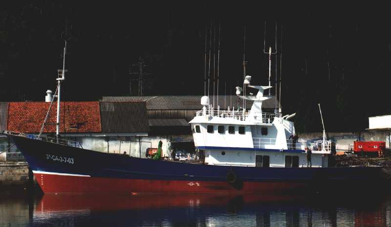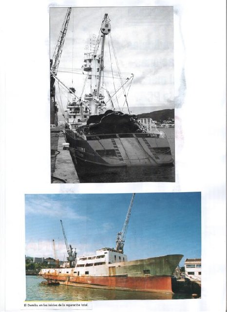 https://i.postimg.cc/NFdFYytG/USISA-1981.jpghttps://i.postimg.cc/8PCs4bd7/ANZIKA-1977.jpghttps://i.postimg.cc/SRSRw6wt/LOANGO.jpghttps://i.postimg.cc/v8hc5KnR/MANICONGO.jpg Salimos de Abidján a finales de Agosto de 1981 rumbo SE hasta el cantil de Gabón, no había nada de pesca por parte alguna y la idea del patrón era bajar hasta Angola donde en Septiembre del año anterior se hicieron grandes capturas de Listado (Katsuwonus Pelamis) con brisas en 14º de latitud Sur y entre 60 y 100 Nm de la costa. Navegamos sin descanso hasta la desembocadura del río Congo y a partir de ahí navegábamos de día y parábamos de noche porque en esas fechas cualquier cosa en forma de túnidos podía aparecer al Sur del río. No encontramos pesca alguna hasta llegar al 14º Sur pero al llegar allí sí que aparecieron las brisas. El agua del mar estaba a 18º C y de día hacía fresco pero es que de noche el frío era intenso. No había nada de viento pero sí un gran maretón, venían unas olas tendidas enormes del Sur de algún temporal desatado en Cabo de Buena Esperanza, seguro. Una permanente neblina estaba instalada en el ambiente que no dejaba ver el horizonte pero había buena visibilidad hasta unas 5 Nm. Cuando aparecimos por allí descubrimos que se nos habían adelantado el Almadraba Dos de 1.100 Tm y el Playa de Noja de 600, éste último llevaba cerca de 2 meses de mar y esperaba completar allí para irse a puerto. El otro había salido de puerto unos días antes que nosotros. Nuestro barco cargaba 1.000 Tm a tope, es el azul de la primera foto y esa era la segunda marea de mi primera campaña como capitán del barco con mi título recién estrenado el cual por cierto hube de ir a buscarlo al Ministerio, a Madrid con mi coche por vía de urgencia con carta de la empresa y demás documentos. Nada más llegar comenzamos a pescar, teníamos helicóptero a bordo al igual que el Almadraba y desde arriba se veían mejor las bolas de pescado pues las brisas eran finísimas y difíciles de ver desde el barco. El pescado estaba concentrado lomo con lomo como los bokartes en vivero sobrecargado dándose calor unos a otros mientras pastaban el rico plancton que abunda en aquellas aguas extremadamente ricas y verdes como moco. La zona de Angola y Namibia es una especie de nursery, un área de cría para el listado juvenil al igual que lo es la zona de Perú y Chile en el Pacífico. Desafortunadamente ese año los cardúmenes eran pequeños, capturábamos 15, 20 o 25 Tm por lance pero hacíamos 3 lances diarios y no tuvimos un solo lance blanco en aquellos días. El patrón volaba en el helicóptero con el piloto y yo estaba a los mandos en los lances. Siendo ambos novatos en aquella modalidad de pesca resultó que nos acoplamos a la perfección desde el primer lance y nos iba de maravilla. Cuando finalizábamos el cerco la brisa desaparecía de la vista y ya no se volvía a ver hasta el antesaco cuando comenzaban a venir listados sueltos en las mallas. A veces recibíamos la visita de algún lobo marino hambriento. Cuando salabardeábamos el pescado la cubierta se impregnaba de una especie de lodo color beige que desprendía un olor penetrante que no era otra cosa que el contenido estomacal de los listados capturados que daban en báscula un peso de 1,7 a 2 Kg. Una semana después de nuestra llegada a la zona el Playa se marchó a puerto sin completar porque se estaba quedando sin combustible mientras nosotros habíamos reunido 400 Tm, el Almadraba estaba pescando también menos que nosotros. Llegamos al día 12 de pesca con 700 Tm pescadas o algo más cuando recibimos el aviso del Almadraba que había encontrado aleta amarilla a la altura de Lobito, en el 12º Sur y navegamos hacia allí despacio toda la noche para llegar al amanecer. Al día siguiente metimos 30 Tm de atún de 60 Kg unidad y quedamos en el sitio. El día 14 en zona de pesca largamos nada más amanecer a unos saltos de atún que desaparecieron nada más comenzar a largar el arte de cerco. Teníamos 3/4 de red embarcada y estábamos el patrón y yo en la cónsola de mandos hidráulicos cuando escuchamos un bocinazo, habíamos salido esa marea solo los 2 en el puente y no había nadie arriba en ese momento, me asomé por la banda de Er de la cubierta de botes y a 1 cable estaba parado un ballenero pintado de negro de 70 Mt de eslora. Subí al puente y en la amura del ballenero leí PROTECTOR ayudado de unos prismáticos, observé que además de la bandera de Angola aquel barco tenía izada una bandera del CIS que decía que quería establecer contacto por VHF. Llamé por el canal 16 y me informaron que el protector era un barco de Inspección y Fiscalización del Ministerio de las Pescas. Querían ver nuestra licencia de pesca y la patente de navegación del barco para verificar la verdadera identidad del mismo. Les dije que la licencia físicamente no estaba a bordo porque no llegó a tiempo para nuestra salida pero que estaba concedida y pagada, que podía enviarles las licencias de 1979 y 1980 para que vieran que la sacábamos cada año. Les dije también que el gobierno de mi país no me permitía entregar la patente de navegación a nadie pero que en su lugar les enviaría el diario de navegación sellado por la capitanía de Huelva que atestiguaba la identidad del barco. Para entonces ya estaba toda la red a bordo, el patrón en el puente, el barco parado y la panga al costado. Me respondieron que conforme, les insté a que arriaran el hermoso bote de tingladillo que lucían en su cubierta de botes para enviarles lo requerido y me respondieron que su bote estaba averiado y que les enviara el diario y las licencias viejas con nuestra panga. Lo que es actuar de buena fe, o como pardillos, o no sé. Le entregué el diario y las 2 licencias caducadas dentro de una bolsa al panguero y le ordené que se las llevara a los angoleños. Dos minutos después el simpático responsable de aquel barco nos comunicó que no habíamos enviado n