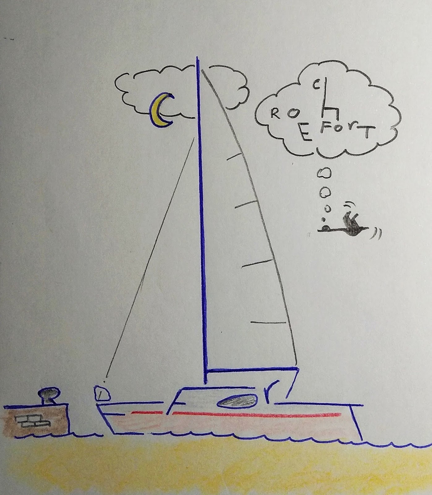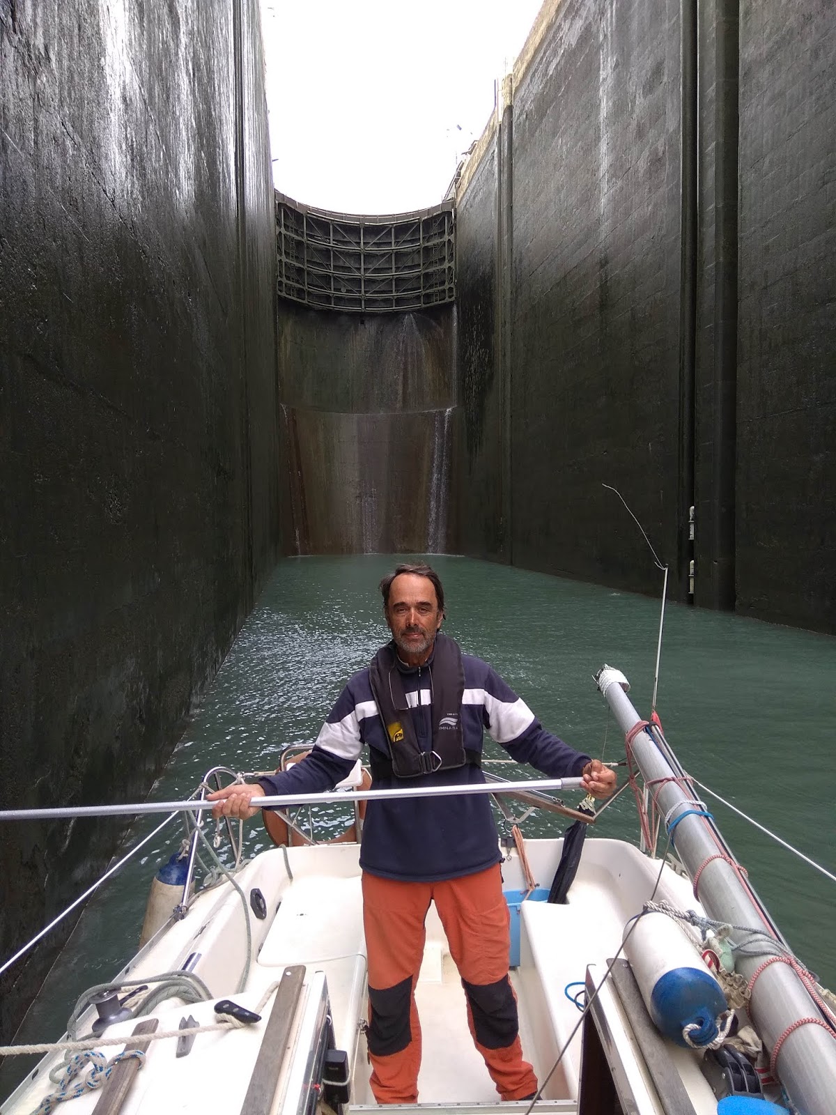 Hola navegantes. Claro, en 3 meses no todo son momentos que entusiasmen al graderío. También los hay malos, de esos que te hacen replantearte lo que estás haciendo. He aquí algunos: La falta de viento en Las Landas, la etapa más larga (125 millas, 33 horas) que nos obligó a escuchar el petardeo del motor un dia entero, a hacer noche en el mar, y que concidió con ejercicios de tiro del ejército francés que sólo nos dejaba una estrecha franja de 3 millas paralelas a la orilla para navegar. Y además se estropeó el timón automático (entrada del blog de 29-5-18). La imagen es de Capbreton: La meteorología adversa en algunas etapas de Bretaña, con lluvia, niebla, frío, escasa visibilidad, tormentas eléctricas... en pleno mes de junio (por ejemplo, entrada del blog de 17-6-18 cuando pasamos en Raz du Seine y casi no lo vemos por la niebla): Esquivar durante varios días los campos de tiro del ejército francés, que se iban desplazando al Oeste a medida que nosotros mismos avanzábamos hacia allí (entradas del blog de 13 y 14-6-18): https://4.bp.blogspot.com/-de9lJdIu3...613_220524.jpg Los días en que nos pillaba la marea en contra en el Canal de la Mancha, y en vez de avanzar retrocedíamos, como si quisiéramos volver a Santander por donde habíamos venido (entrada del blog de 12-7-18): https://4.bp.blogspot.com/-AtQvMeRov...eAppEurope.png Los problemas con el motor en los canales, por la colmatación de algas que bloqueaban la hélice y nos hacía avenzar a un nudo o menos entre aquella indisciplina vegetal, y además en plena ola de calor con 35 ºC a la sombra. Las paradas a la orilla del canal para solucionar los problemas mecánicos (entrada del blog de 7-8-18): https://4.bp.blogspot.com/-s_QRva1TB...819_194140.jpg Hasta mañana navegantes. |