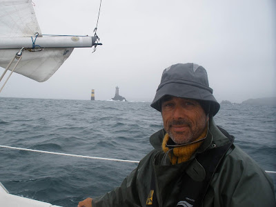 Hola navegantes. Después de las Islas Glénan nos tocó sobrepasar la Punta Penmarch, que marca el comienzo de la Bretaña Norte y un cambio cualitativo en nuestro viaje. En efecto, de ahí hacia el Norte las costas bajas, más o menos protegidas y con abundantes rías y estuarios de Bretaña Sur, dejan paso a las rocas, los escollos mal balizados, los puertos en sitios inaccesibles, y sobre todo la fuerza de los elementos (viento y olas) del Oeste. Tanto es así que los pescadores de la zona que tiran hacia el Sur suelen decir que al ver el faro de la punta Penmarc’h ven la puerta de su jardín. Nos tocó pasarla con chubascos y un viento del Oeste de fuerza 5-6 y surcando unos mares con fuerte marejada, que pondrían en apuros hasta al Descubridor. En la cara Sur de la punta Penmarc’h hay tres puertos, Lesconil , Le Guilvinec y Saint-Guénole, los tres rodeados de escollos peligrosos y de marcas cardinales que hay que seguir a rajatabla. Fijaos cómo los contemplan los marinos locales que unos escollos entre Guilvinec y Lesconil se llaman en bretón “Ar Guisty”, o sea, “Las Putas”, y la cartografía está llena de pecios. Con aquel tiempo borrascoso ni se nos ocurrió la posibilidad de entrar en ninguno de los tres puertos a pesar de la mojadura que llevábamos, y no nos quedó más remedio que avanzar hasta pasar la maldita punta. Pero la pasamos y arribamos a Audierne, en el interior de un río, desde donde planificamos el paso del Raz du Seine (que hicimos también con niebla y un tiempo invernal) y entramos finalmente en el golfo de Douarnenez. Ya estábamos a un tiro de piedra de Brest, donde me reuniría con Ana unos días después. |