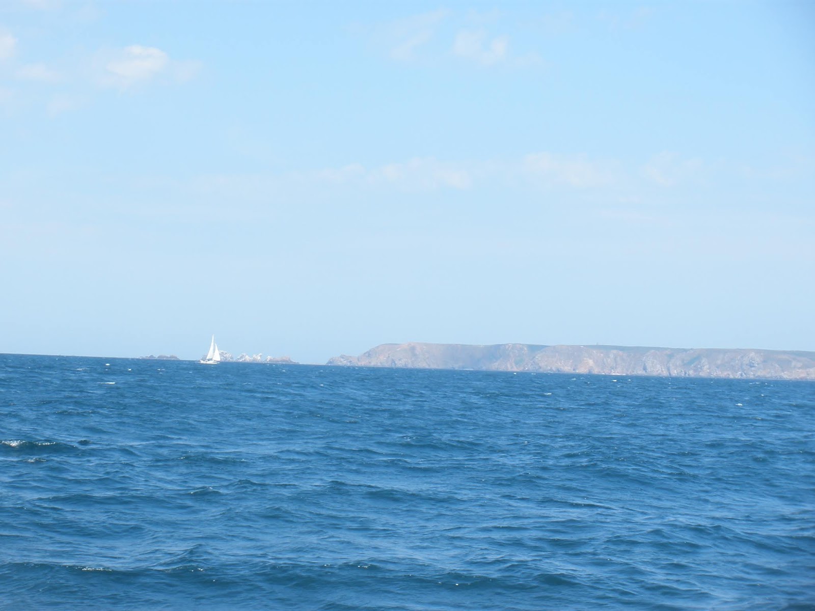 Hola navegantes. Después de Le Palais fuimos al Río Etel y a la Isla de Groix, y a continuación a las Islas Glénan, las de la famosa escuela de vela. No siempre salen las cosas como deseas y esta vez no pudimos desembarcar. Es un archipiélado sembrado de islotes y escollos, y fuimos al fondeadero de la Isla de San Nicolás, la única habitada, que tiene entre 1 y 1,5 metros de calado. No estaba protegido del viento, que era del Noroeste y parecía venir directamente del Polo, pero sí del oleaje, que era del mismo sector pero nos llegaba amortiguado por las rocas. Desde allí veíamos un muelle de desembarco muy tentador, y estuvimos pensando ir con el Corto Maltés, visitar la isla, y luego volver al fondeo. Pero fue providencial que no lo utilizáramos, porque ya desde mitad de la marea vaciante se quedó en seco. Al poco rato entró en el fondeadero un velero Oceanis enorme y sus dos ocupantes echaron una Zodiac al agua. Cuando estábamos a punto de pedirles que nos desembarcaran vimos que echaban a la Zodiac unas nasas de pesca y las esparcían en torno al barco. Dudamos si era una actividad legal en ese sitio protegido, pero estuvo claro que no iban a desembarcar y después de colocar las nasas volvieron al velero. Más tarde hicimos gestos a una Zodiac que se dirigía al muelle y se acercaron. A bordo iban dos parejas y les preguntamos si había alguna posibilidad de que alguien nos desembarcara. En esos sitios tan inaccesibles a veces los mismos restaurantes tienen un botero que te hace el tránsito si vas a comer o a cenar en su establecimiento. Pero no era el caso, y las dos parejas de la Zodiac tampoco se ofrecieron a llevarnos. Y finalmente, la alternativa de dirigirnos al muelle en nuestro anexo de juguete, que apenas tiene flotabilidad para Ana y para mí (120 kg. entre los dos) y que posiblemente fuera insuficiente para los dos que íbamos a bordo, estorbándonos para remar, contra aquel viento helador de fuerza 5, entre las olas, y con la posibilidad de que se hiciera de noche para la vuelta, nos pareció ya muy arriesgada. Nos acordamos del refrán de que la prudencia ayuda a la suerte, y nos resignamos a no desembarcar y conocer el archipiélago sólo desde el mar. |