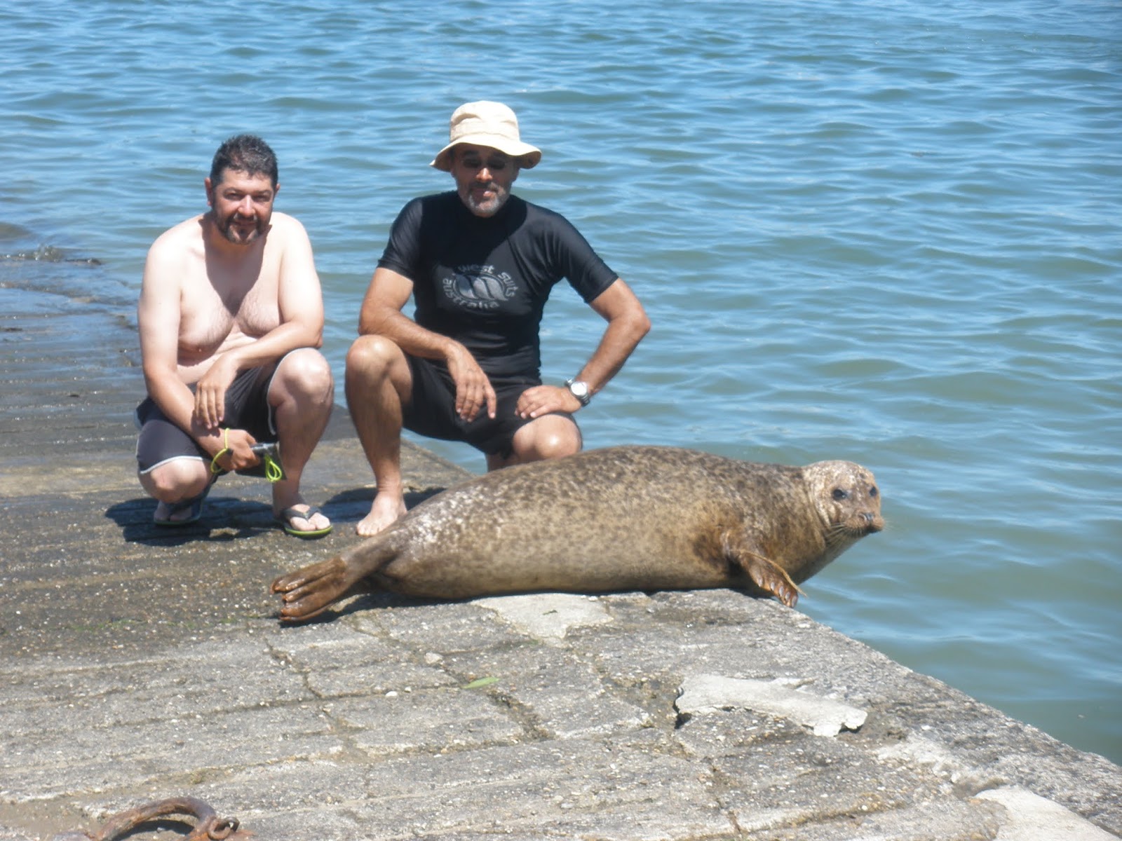 Hola navegantes. Después de pasar por Saint-Malo entramos en La Rance. Iba a ser otro de los sitios míticos de la vuelta a Francia, y de los más curiosos por los que se puede navegar. No creo que haya otro lugar en el mundo donde las mareas desobedezcan a la luna. Es un enorme río cerrado por una presa mareomotriz, o sea, la represa se llena y se vacía, y para mayor eficiencia se permite modificar el nivel de la marea aguas arriba. Está mediatizada por las necesidades energéticas y se ha creado un régimen de mareas artificial cuya amplitud puede ser desde 4 hasta 12,5 metros en vertical, y eso de un día para el siguiente. Las tablas de mareas se publican sólo para la semana siguiente y están apostilladas con la frase "Estos horarios son sólo probabilidades. Pueden ocurrir cambios". Pasamos la esclusa sólo dos o tres barcos, y al salir en el lado de La Rance caímos en un mar de papel de plata, porque la propia presa hacía un remanso del viento.Nuestro destino ese día era Plouër sur Rance, unas 10 millas río arriba. Al pasar frente a la rampa de varada de Mordreuc nos quedamos de piedra al ver una foca tumbada tomando el sol en la rampa, entre la gente que se bañaba y se bronceaba. ¡Era Josefina!. Es una foca que desde hace 20 años vive en los alrededores de ese pueblecito, y en verano viene a dormitar a la rampa donde se bañan los niños. Se supone que entró en La Rance en una de las aperturas de la esclusa y luego no ha querido volver al mar a través de esa infraestructura tan peligrosa, arriesgándose a ser succionada por las turbinas y terminar en carne picada. Ya es famosa y sale hasta en las postales. En cuanto la vi amarré el Corto Maltés a una boya, me puse el bañador y me tiré al agua con la misma determinación que una frase sin comas. Y fue mi único baño de ese verano, porque por el agua estaba realmente fría. Pero no quise esperar a inflar el anexo por si acaso Josefina se aburría y se marchaba. Estuvimos como una hora haciéndonos fotos con ella. ¡Id con cuidado!. |