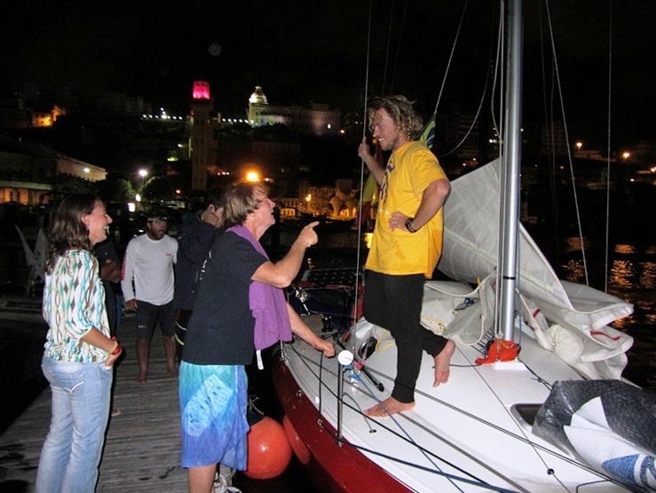 Aunque fuera de regata, no ha querido perderse la emoción de pasar la línea de llegada en Salvador: