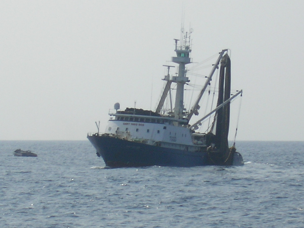 Vamos a situarnos en Abril del 2008. SINGLADURA 23 (Miércoles) El plantado súper-veterano con su boya estaba situado a veinticinco millas al Nordeste de la isla de Santo Tomé y se desplazaba arrastrada por la corriente a tan solo tres o cuatro décimas de nudo en dirección Sur. La mar era prácticamente como una inmensa balsa de aceite cuando el “Apóstol Segundo” se acercaba rápidamente hacia él. Aún faltaba un poco para que comenzara a amanecer y había Luna Nueva, o sea, no había Luna, así es que la noche era negra cual boca de lobo como vulgarmente se suele decir. Aquella boya había hecho un recorrido casi inaudito, estuvimos haciendo seguimiento visual de ella durante meses en la pantalla de las boyas satelitarias con asombro pero sin poder visitarla porque viajaba por la costa de diversos países en cuyas aguas no podíamos pescar. Se echó al agua cerca del banco del 3º Sur y viajó haciendo W y WNW hasta que cruzó el Ecuador en 22º W. después hizo N hasta el 5º Norte y posteriormente E hasta el Cabo Palmas, de allí viajó sucesivamente por las costas de Costa de Marfil, Ghana, Togo, Benín y Nigeria. De allí hizo Sur pasando por la parte oriental de la isla de Príncipe y ahora estaba con la isla de Santo Tomé por su parte SW. Había realizado todo este periplo en 5 meses pero lo más asombroso del tema es que no hubiera sido interceptado por ningún cerquero o cañero coreano en su paso por Costa de Marfil, Ghana, Togo, Benín o Nigeria. Faltaba algo más de una milla para llegar junto a la boya de la cual aún ignoraban los tripulantes si estaría con su plantado correspondiente o no, cuando Jon amoderó el motor hasta el ralentí y segundos después desembragó. Inmediatamente después el sónar de baja frecuencia que permanecía en transmisión al igual que el otro desde media hora antes detectó algo que no era muy habitual a tan temprana hora ni a semejante distancia. En la parte de arriba del monitor a poco más de una milla de distancia apareció una mancha roja algo mayor que un huevo de gallina, Eustaquio exclamó: -¡Ostia, ahí hay morterada, seguro!- -Ojalá sea así pero yo no estoy seguro. Os he dicho muchas veces que aquí el interior del Golfo de Guinea, entre islas, es el criadero natural de barracudas y bananas principalmente, y como ya sabéis ambas especies tienen grandes y abundantes escamas. Debido a eso pueden generar una mancha descomunal en los sonares porque tanta escama actúa como reflectante de las ondas haciendo creer que hay mogollón de pescado. Lo mismo puede suceder en esta zona como en las proximidades de Guinea Bissau con el jurel, como ya nos sucedió la campaña pasada- -¡Coño, no me jorobes Jon, no seas agorero!- protestó el capi -Esperemos que sea material del bueno- porfió Javier -De momento vamos a ponernos listos para largar- ordenó Somarriba Javier hizo sonar la alarma en tres lagos timbrazos, Abdou echó a correr hacia el bote rápido con amplia sonrisa en el semblante, como hacía siempre. Con la arrancada se habían acercado a seiscientos metros y el manchón en ambos sonares ahora era más grande que la cajetilla de cigarrillos que Jon acababa de extraer del bolsillo lateral de la sudadera de su chándal. Encendió uno y después de meter todo el timón a estribor dió una palada avante para evitar que el barco se fuera encima del cardúmen. En su fuero interno presentía que aquello era pescado del bueno pero no quería echar las campanas al vuelo porque de equivocarse el berrinche sería monumental para todo el mundo, pero sobre todo para él, que lo tomaba todo tan a pecho, por añadidura era el responsable del barco así es que huelga añadir más. -El bote está en el agua- informó Agustín Un cuarto de hora después se encontraban con el arte en remojo y acababan de comenzar a virar los cables. Estaba amaneciendo y aunque el Astro Rey no había hecho acto de presencia aún se veía ya con bastante claridad. Entre otras cosas se divisaba nítidamente la brisa de pescado que había aflorado en plena largada alrededor del bote manejado por Abdou que sujetaba en su gancho de remolque el cabo que procedía del viejo plantado. El mismo cabo que hasta poco antes estuviera sujeto a la boya forrada de percebes en toda su parte sumergida. Una vez virados los cables y el plantado a bordo, Apolo, que sí era rubicundo ese día puesto que apenas había nubes en el firmamento, lucía en todo su esplendor mientras la brisa originada por la pesca encerrada en el cerco se hacía cada vez más grande y áspera, como cada vez era más grande y áspero el ansia que embargaba el corazón de Jon Somarriba. Cuando habían virado la mitad del arte era más que evidente de que allí había mucho pescado, había que ser muy cegato para no verlo. La sonda lateral marcaba mucho, los brillos del gran cardúmen de listado grande que se movía próximo a la superficie eran continuos y numerosos y patudos jóvenes venían mallados vivos de continuo en las mallas grandes de la parte central de la red. Cuando Koyo preguntó que cuántas anillas del saco debía coger, el patrón le respondió que diez, y el africano acogió la respuesta con júbilo, el saco de la red del “Apóstol Segundo” tenía doce en total. La silueta de la isla de Santo Tomé se divisaba nítidamente por el Suroeste, un avión comercial de pequeño tamaño se acercaba por el Norte procedente de Príncipe, mientras un transbordador de pasajeros que se asemejaba más a un bus acuático que a una embarcación salía raudo en dirección contraria. Estaba el extremo del saco entrando en el halador cuando éste casi se detuvo debido al peso. Había calma y chicha y el barco apenas se balanceaba, de haber un poco de balance la cosa se simplifica puesto que las oscilaciones del barco originan que a cada bandazo a estribor la red suba y cuando es a babor el halador recoja, así de simple. También es cierto que la ausencia de balances es primordial para en caso de q
