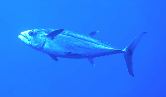 Y ahora toca el chiquitín de la familia: LA MELVA <<Es el más pequeño de todos los peces de su familia. Tiene el cuerpo en forma de huso y la sección central de su cuerpo es cilíndrica. Su hocico, así como la boca y los dientes son pequeños. Los ojos son de tamaño mediano. La piel está constituida por cuatro capas de tejido distintas que se entrecruzan. La primera aleta dorsal es triangular y muy pequeña, a consecuencia de lo cual está muy separada de la segunda, que es blanda y pequeña también y está situada en posición opuesta a la anal. El color de su dorso es gris azulado adornado con manchas negruzcas e irregulares, de manera muy parecida a como sucede en la Bacoreta y en la Caballa. Los flancos son plateados con un tono celeste. El vientre es plateado con tono a cromo, es decir muy brillante. La parte superior de la cabeza es más oscura que el dorso y sin manchas. Todas las aletas de la Melva son de color gris y de pequeño tamaño, excepto la caudal que es proporcional a su talla. Va precedida de pequeñas pínulas semitransparentes. Posee escamas pequeñas, cicloideas y lisas solamente en el corselete, estando enteramente desnudo de ellas el resto del cuerpo. Tiene crestas y quilla en el pedúnculo caudal. La aleta caudal tiene los lóbulos puntiagudos y su forma se asemeja mucho a la de la Caballa, al igual que en el caso de la Bacoreta. Raras veces alcanza el medio metro de longitud, con un peso de 2,5 kg., y esto únicamente en la pesquería del Japón. La mayor parte de los ejemplares que se capturan rondan entre los 30 y los 40 cm, con un peso de alrededor de 0,75-1 kg. Es capaz de alcanzar velocidades de 30 Km/h, lo que no está nada mal teniendo en cuenta su pequeña talla. Habita en todos los mares tropicales y templados del Planeta, lo mismo cerca de las costas que en Alta mar, aunque es más frecuente encontrarlo en las proximidades de los continentes. Es muy sociable. Se asocia por comensalismo con asiduidad con cualquier otra especie de Túnido, excepto con Atún común. Por este motivo y por su pequeña talla a veces es presa de Rabiles y Patudos, que los engullen enteros sin contemplaciones. Su asociación con Cetáceos y Tiburones es también habitual. Es muy dado a congregarse bajo objetos flotantes y también bajo barcos a la deriva. Además le atrae mucho la luz artificial. Vive en aguas cuyas temperaturas se encuentran entre 22 y 32º C., mayormente se le encuentra con temperaturas de entre 25 y 29. Prefiere las aguas superficiales de hasta 50 Mt. de profundidad, donde captura sus presas consistentes en alevines de otros peces principalmente. La Melva alcanza la madurez sexual a los tres años cuando su talla es de unos 35 cm, con un peso de 0,8 kg., y pone entre 200.000 y 1.000.000 de huevos dependiendo de la talla. Puede vivir hasta diez años. Existe una subespecie en el Océano Pacífico denominada Melvera en el vocabulario popular, y que recibe el nombre científico de (Auxis Rochei). Su carne es muy sabrosa, sobre todo conservada en aceite de oliva, pero es poco codiciada por los conserveros dado que debido a su escaso tamaño requiere mucha mano de obra para su enlatado. Además el rendimiento neto es paupérrimo comparado con otros Atunes, puesto que la parte que se desperdicia es muy grande, aproximadamente los dos tercios del peso del ejemplar crudo. Fue descrito y debidamente clasificado por vez primera por Lacépede en el año 1803, que lo bautizó con el nombre de (Auxis Thazard)>> |