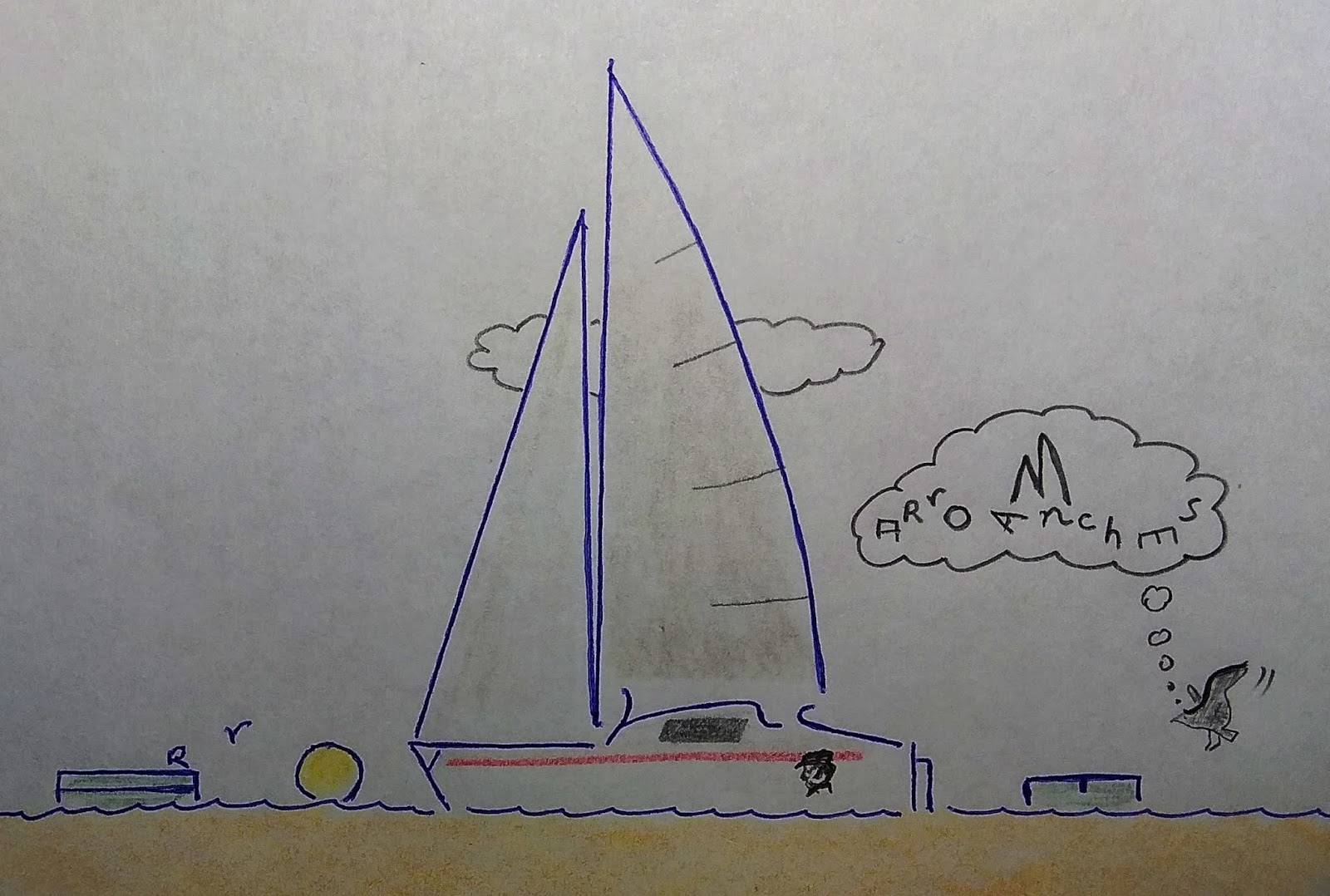 Ostras.... Álvaro! GRACIASSS... ! Creo que no recuerdo hace cuánto, pero muchísimo tiempo que no experimentaba este sentimiento grato de sorpresa,... De quedarme parado unos segundos. Al principio no vi el dibujo ( o mejor dicho no me percaté). Las cosas de andar con un móvil pequeñito y ser algo miope.... Mas Releyendo tus aventuras, y algo extrañado porque en ese mensaje no escribías nada, de repente me percaté de tú entrañable dibujo y dedicatoria. Lo dicho, gracias de veras!! (Cómo estamos entre rudos marineros y en este caso además hombre, se supone que hay algunas cosas que no habría que decir pero... Me parece un dibujo precioso. Entrañable alegre y evocador. Y aún de más valor por no haberte lo solicitado, y por tu invitación hacia mi nuevo velerito. Sinceramente... Me emociono! Buen día y muy buenos Vientos y Mares a Tod@s! |