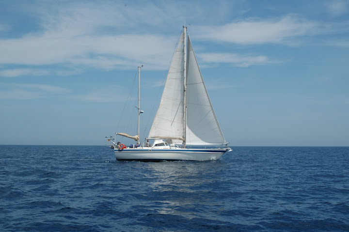 Las 0730 horas UTC, siempre UTC, después de repostar combustible, y después, mucho después del alba, como pretendía, salimos de la bocana del Port Olimpic en Barcelona, y ponemos rumbo al sur. El “Mayra Primero”, un precioso Contest 40, un quetch de más de 30 años, navega en conserva con Telémaco. Iniciamos así la maniobra de aproximación para participar de la Flotilla de la Amistad del 2010 hacia el Guadiana y el Algarve. http://lh3.ggpht.com/_gIfoCZllY4o/TE...0navegando.JPG Mayra navegando rumbo Formentera Tenemos marejada, con viento del SW de fuerza 4. Cielo despejado. Anticiclón y baja estacionarios. Así, iniciamos la ceñida, esa que siempre toca navegar en el mediterráneo. Aquella que mi amigo mayor dijo que “navegar de ceñida no es de señor”. Pero disfrutamos de esta preciosa ceñida, aunque modifiquemos rumbos pasadas las bocanas del puerto de Barcelona y de la punta del río Llobregat. Y ahora sí, ahora ponemos rumbo directo a Formentera, por Espalmador. La navegación transcurre más incidentes que los típicos de evitar los “rumbos de colisión” propios de esta ruta tan transitada. Pero gracias al AIS no hemos sentido seguros en todo momento, controlados y controlando. http://lh4.ggpht.com/_gIfoCZllY4o/TE...entera%201.JPG Telémaco navegando rumbo Formentera http://lh4.ggpht.com/_gIfoCZllY4o/TE...egando%201.JPG Mayra Primero desde Telémaco _______________________ Para almorzar hemos cocinado una sepia con patatas: Freír una cebolla picadita, junto con un pimiento verde. Luego, le añado tres dientes de ajo, cortados a rodajas finitas. Cuando toma color, le añado tomate frito, unas hojitas de laurel, y unos clavos. En lo anterior, sofrío la sepia cortada en trocitos. Le añado agua hasta cubrir, y unas patatas cortadas a trocitos. Lo dejo hervir, y hacer “chup-chup” hasta reducir. Hoy ha hecho “chup-chup” durante algo más de una hora. Para cenar, verduras hervidas. Las guardias me gusta organizarlas con una frecuencia de dos horas. Es un tiempo adecuado que no permite “cansarte” y mantener la vigía. Claro que yendo sólo dos tripulantes, José Luis y yo, también el tiempo de dormir se hace tremendamente corto. Pero una noche puede pasarse hasta sin dormir. Ha sido a las 0045 horas, en mi guardia, cuando nos hemos visto comprometidos con un buque de pasajeros de 165 m. de eslora, el “Martin i Soler”, a 19,8 nM de nuestra popa, dándonos alcance, y con rumbo 190º, y con otro buque de cargo, de 148 m de eslora, por nuestra proa, el “Jasper S”, a 5,3 nM de distancia y rumbo 360º. Telémaco navega a 4,9 nudos y rumbo 198º. Gracias al AIS nos hemos sentido seguros. En la pantalla observo cómo “Martín i Soler” modifica un grado su rumbo, y algo más tarde otro grado más a su babor para pasarnos al final con rumbo 188º. Gracias. La noche está estrellada. Ayer tuvimos luna nueva y nos permitió observar con claridad las estrellas. El esplendor de la Vía Láctea no dirige hacia Formentera. Y al día siguiente, a las 1800 horas, fondeamos en Es Pujols, con viento de SW de fuerza 3. Hemos hecho una navegación tranquila, pero un poco lenta y por ello pesada. Llegamos cansados pero satisfechos. Ahora toca baño y relax. http://lh5.ggpht.com/_gIfoCZllY4o/TE...s%20Pujols.JPG TElémco en el fondeo de Es Pujols. Arriba los gallardetes: LTP, Anavre, y el de cortesía de Illes Balears. Hoy estoy contento. Es mi santo. Me han llamado para felicitarme. Me han escrito. He estado con los amigos. y he tenido una sorpresa estupenda, con la que he disfrutado un montón, descubriendo escondites. Estoy contento. Hemos tenido la visita del patrón del Luziana, un Bavaria 47 que tiene su atraque en Marina Badalona, y reconoció a Telémaco. http://lh5.ggpht.com/_gIfoCZllY4o/TE...0fondeados.JPG Mayra y Telémaco en el fondeo. La tripulación en las operaciones propias de un buen fondeo El día siguiente, tenemos previsión de viento de levante y hemos decidido fondear en Cala Sahona. Y, efectivamente, entra E/SE de fuerza 3 arreciando a 4. http://lh6.ggpht.com/_gIfoCZllY4o/TE...C%20Sahona.JPG Fondeo de Cala Sahona En el fondeo de Cala Sahona cuento 52 barcos fondeados. Una locura. La playa, abarrotada. No tengo ganas de bajar a tierra. Decido escribir. Me quedo solo a bordo. José Luis y su hijo han ido a tierra junto con los del Mayra Primero. Yo, solo, decido escribir. Y pensar. Y leer. Y beber un vasito de agua fresca. Hasta la puesta de sol. La gente viene a esta playa a vivir la puesta del sol. Nosotros también lo haremos, pero a bordo, y hemos decidido que para entonces levantaremos el fondeo y navegaremos con la puesta del sol, a fondear en Illetes. Mañana estaremos en Illetes y bajaremos a tierra en La Sabina. Será la procesión del Carmen. http://lh5.ggpht.com/_gIfoCZllY4o/TE...%20Sahona1.JPG ¡Hasta mañana! |