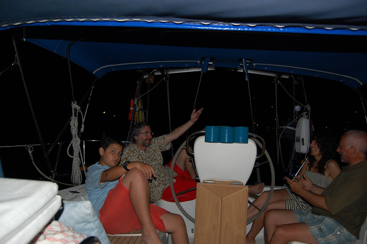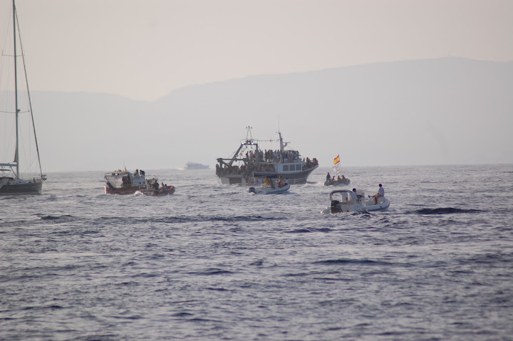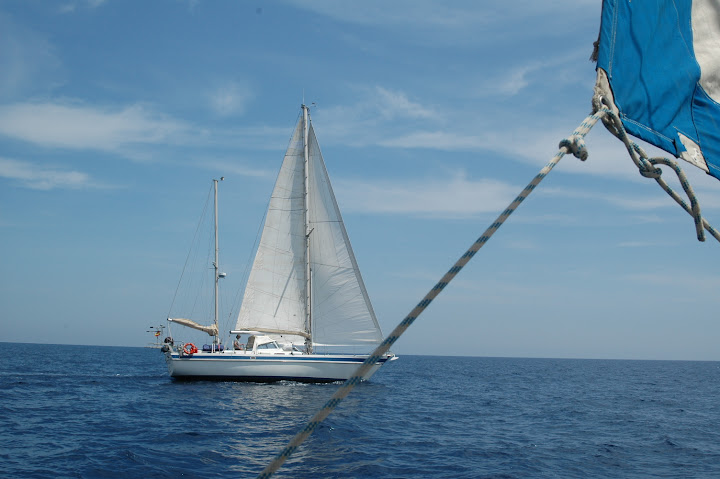 Fondeados en Les Illetes. Llegamos al fondeo al ocaso. Y un montón de personas nos aplaudieron al llegar, ¡y eso que todavía no habíamos largado el hierro!, que por cierto no es de hierro, sino de acero inoxidable, un ancla Rocna, de la que estoy encantado. Hasta ahora me ha agarrado en todo tipo de fondo. Y a veces he querido ponerla a prueba dando atrás a tope, sin inmutarse. Estoy tranquilo con ella. El ocaso en Formentera. Al fondo, Es Vedrá Multitud de personas para vivir el ocaso desde Formentera, en Illetes Las tripulaciones descansando, después de las primeras 140 millas. Llegamos al fondeo, digo, y al día siguiente era día de Nuestra Señora del Carmen. Y procesión marinera, claro. Ahí estuvimos. Recuerdo otras procesiones del Carmen a las que he asistido. En Torre del Mar, en la Caleta de Vélez, en Sitges, en l’Ampolla, en Formentera, en Melilla. En Melilla, sí, qué exhibición de alboroto, de espumas, de todo. En Melilla ha sido, sin duda, la más espectacular de todas. Toda la flota por todas las dársenas del puerto, entrando y saliendo de ellas cuando los últimos todavía no saben bien para dónde tirar sin riesgos de colisión. Pero suena todo a alegría. Alegría marinera. En Illetes participamos de la procesión como espectadores, y pedimos buen rumbo para Telémaco, para sus tripulantes, e idem para la Flotilla, y todas las otras flotillas que han ido surgiendo. http://lh4.ggpht.com/_gIfoCZllY4o/TE...0/DSC_0054.JPG http://lh4.ggpht.com/_gIfoCZllY4o/TE...0/DSC_0060.JPG La procesión del Carmen, en Formentera. Salimos de Formentera, después de repostar gasoil, rumbo la Península, hacia el Rincón de la Salitrona en Murcia, pocas millas apenas pasada Cartagena. El consumo medio de gasoil que hemos tenido ha sido de 3,01 l/hora. Dejamos Formentera a la 0745 UTC, con una mar dócil, rizada, y un viento de W, fuerza 1. El día está despejado, y augura una buena navegación, con vientos largos. Pero con este escaso viento hemos de poner motor, a 1500 rpm. A las 1100 UTC nos percatamos de agua potable en sentina, achicamos algo más de 100 litros. Se había desenganchado una conexión del vaso de expansión, en el motor de agua potable, y no percibimos el ruido, al llevar el motor en funcionamiento. Hemos perdido más de 100 l. del depósito de proa. Las bridas de abajo, a la izquierda, son las que se soltaron Varias enseñanzas: a) necesito llevar a bordo medio metro de ese tipo de tubito, b) cuando vaya a motor debo acostumbrarme a desconectar el motor del agua, lo mismo que hago cuando abandono el barco en un fondeo o puerto, y c) hemos consumido algo menos de 3 l. de agua por persona/día lo cual es todo un récord. _______________________ Para el almuerzo hemos cocinado un “Solomillo de la pasión”: _______________________ Divisamos muchos palangres de pescadores de Formentera. Están en sondas de más de 100 m. Nosotros tiramos nuestro curry, una vez más, y una vez más no nos pican. Nada. Para cenar, Palmitos con salmón y York a la plancha. Poco a poco el viento va subiendo, hasta establecerse en fuerza 5, pasando de marejada a fuerte marejada en zonas, lo que provocaba un incómodo balanceo para nuestro rumbo. Hemos oído por radio muchos “Pan, pan”. Demasiados. La primera, una embarcación a la deriva con 35 personas a bordo, en la zona de Motril. Otro, ya entrado el día otra patera con 50 personas a bordo, también en la misma zona. Otro, una neumática a la deriva con 4 personas a bordo. Otro, en la zona de Garrucha, un bote con inmigrantes, sin concretar cuántos. Otro, en Almería, neumática blanca con 4 personas a bordo, quizás la misma, no lo sé. Da para pensar y reflexionar. Son las 0300 UTC, y distingo en mi guardia, por nuestra amura de estribor, 2 flashes blancos. Es el faro de Cabo de Palos. Da alegría tomar conciencia que estás llegando. El viento sopla de fuerza 5, de levante. Marejada ahora. Navegamos a 6 nudos. Estoy en la zona del dispositivo de tráfico de Cabo de Palos, y distingo en mi AIS 9 barcos que he de vigilar. La luz roja de la proa de Telémaco se refleja en la espuma de la rompiente. Sopla mucho para mi gusto y cansancio. Habría preferido rizar la mayor, pero sigo con todo el trapo arriba. Pasamos palos a las 0600 UTC, y pronto estamos en Escombreras. Enfilamos al islote de Las Palomas para procurar el fondeo de Portús. Portús está a resguardo del levante. Llegamos. Es un remanso. Fondeo. Baño. Nos desinflamos para descansar los cuerpos y las mentes. Son las 1030 UTC. Casi 15 horas navegando, zarandeados. Portús, al fondo la playa naturista. Portús, la playa norte. Pero poco a poco el mar está empezando a entrar en Portús, a pesar de las mil veces y sitios que miramos las previsiones de la meteo. Pero el N no entra, y estamos incómodos. La Azohia. Marchamos a la Azohia, que está una hora. ¡Y qué buena decisión!. Llegamos de noche, contra toda recomendación para fondear, dando un respeto a la almadraba, que estaban levantando según recibimos de un “aviso a los navegantes”, corroborada en el Navtex. La Azohia, bien resguardada de levante. La tripulación, de paseo por la Azohia. Sólo tres barcos en el fondeo. Una delicia. Y allí estuvimos hasta el día 20. Y, como era el “paso del ecuador” de José Luis y su hijo, decidimos celebrarlo en tierra, junto con el Mayra. Y la oferta que vimos fue nuestra perdición. Oferta de un cubo con 10 cervezas, 8 €. La oferta (aviso a los navegantes: el joven mantiene la botella sólo para la foto. Sólo bebe agua) Y cayeron tres cubos, y las horas del reloj corrieron de prisa, o lentas, o yo qué sé, pero no fuimos a dormir antes de las 3 de la madrugada. Hablamos, y hablamos, y hablamos… ¡cosas del mar y marineros!. También la Azohia tiene su ocaso. Al fondo, a la derecha, Telémaco. |