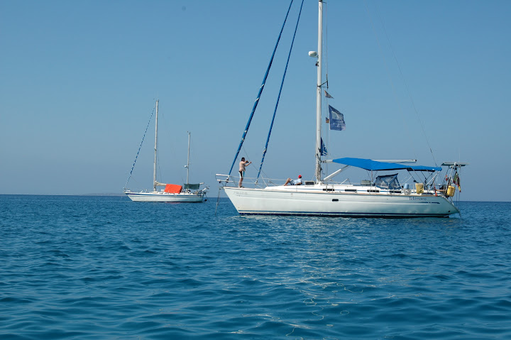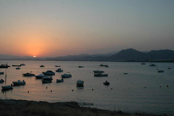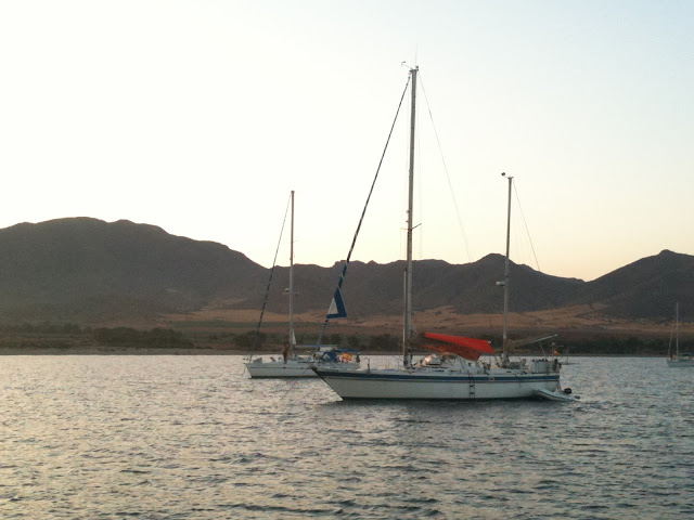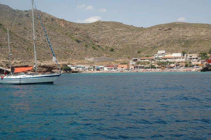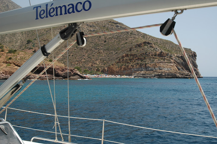 Acabamos de fondear en la ensenada de los Genoveses, en Gata. El ancla bien agarrada, el toldo de fondeo cubriendo hasta el palo. Hay trece barcos en el fondeo. Trece veleros y cuatro motoras. Nunca vi tantos barcos por aquí. ¿Será por el mal tiempo que tuvimos ayer?. Ayer salimos de Cabo Cope. Pasamos allí la noche desde que salimos de la Azohia. En Azohia salimos con un SW de fuerza 3 y marejadilla. Cielo despejado. Verano. Telémaco y Mayra fondeados en Cabo Cope Hemos compartido almuerzo y cena con el Mayra. Ensalada Siria y un arroz negro. La ensalada siria me la enseñó mi “sobrina” Vicky. El arroz negro fue pura invención, sobre la marcha, y efectivamente, salió negro. Y, según manifiestan, puedo repetirlo. Ahí va: