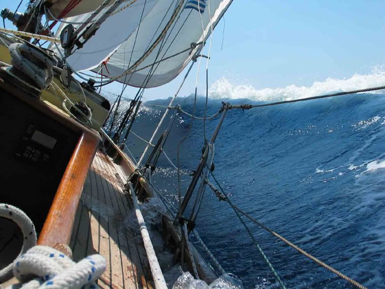 En crucero, está claro: la escora buena es la que te gusta. De vez en cuando, una ceñidita muy escorada es divertida. En cuanto a la escora preocupante, yo diría que depende de la pala del timón y de lo ardiente que sea el barco más que de otra cosa. Y esa escora, sobre todo con dos palas de timón, o con el timón bajo el casco, es mucha escora. Por que el peligro en esos casos es la orzada, con el consiguiente rodar por el suelo de la tripu y la pasada de la botavara. |