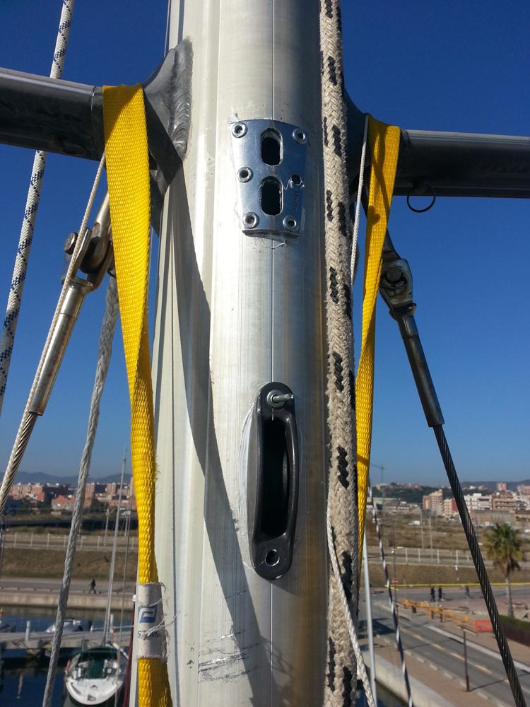 El anclaje wichard de 2 piezas no es tan sencillo de colocar y el agujero en el mástil es considerable.