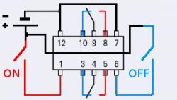 El circuito no es complicado de copiar. Tampoco necesitas los mismos componentes. Un pulsador cuadrado, un circuito fli/flop (suele ser un integrado que no cuesta mas de un euro), un diodo y un rele para 12 V. Si conoces a alguien que entiende de electronica, te lo puede hacer. Aqui tienes un ejemplo de pulsadores http://es.rs-online.com/web/c/interr...sador+cuadrado |