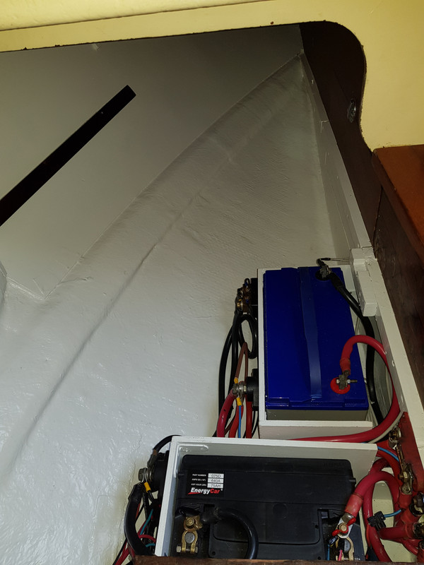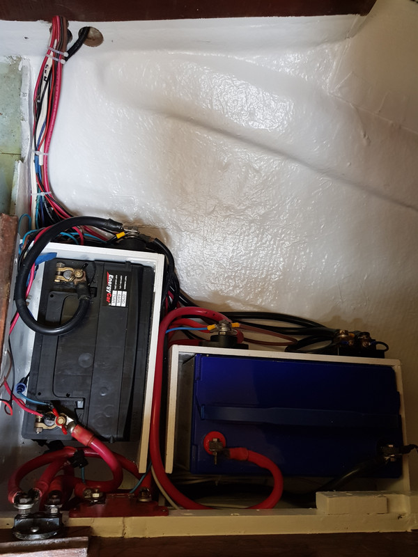 Ahora tocaban las baterías, me daba miedo abordar el tema porque la maraña de cables no había por donde cogerla, pero con paciencia y saliva.... https://i.postimg.cc/J7cXkLCZ/20181021-114540.jpg https://i.postimg.cc/fbNtL2qB/20181021-114544.jpg Ya que estaba decidí sanear también el habitáculo de popa, aunque no había previsiones de que nadie durmiera aquí, no tenía por qué estar tan desaliñado y de paso hacer unos compartimentos estancos para las baterías de motor y servicios de forma independientes. https://i.postimg.cc/qRVZRC98/20180910-182459.jpg https://i.postimg.cc/DfNkk5gN/20181025-183426.jpg https://i.postimg.cc/Z5SyH819/20181026-111328.jpg https://i.postimg.cc/s2DFpLmT/20181031-163814.jpg https://i.postimg.cc/KzTR24Tk/20181031-163827.jpg Claro está que aproveche para cambiar, sanear y clasificar todoel cableado. Me aportó mucha tranquilidad estar seguro de que no habría ningún chispazo :cunao: y me ayudó a entender la distribución eléctrica (cargador, placa solar, generador eólico, etc...) |