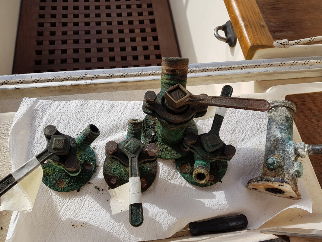 Como ahora tengo tiempo y no voy al barco por los motivos que todos conocemos, me he animado a compartir con la taberna algunas de las reparaciones y mejoras que en estos algo más de dos años, hemos realizado en mi querido barco. Cuando lo compre navegue un tiempo y decidí vararlo y reparar algunas cosas. La primera fue desmontar y arreglar los grifos de fondo. https://i.postimg.cc/gjJK9gPj/20180406-184449.jpg Como veis estaban en muy mal estado, pero al ser de bronce y marca blake, decidí intentar dejarlos lo mejor posible. https://i.postimg.cc/nchtTP3m/20180407-133504.jpg https://i.postimg.cc/HLXR9VhS/20180411-125333.jpg Quedaron muy bien y funcionando perfectamente a día de hoy. |