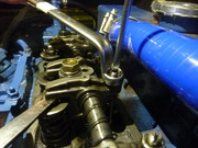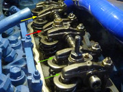 Otra vez tenemos que recurrir a algo de teoría. :sorry: El cigüeñal, al girar, actúa sobre varios elementos del motor (bomba inyectora, alternador, bomba de refrigerante, etc.); el que más nos importa en este caso es el árbol de levas. A su vez, en los motores OHV, el árbol de levas actúa sobre las varillas empujadoras, y éstas a su vez sobre los balancines; los balancines actúan sobre las válvulas, abriéndolas y cerrándolas según el tiempo del ciclo en el que se encuentre cada cilindro. Entre el extremo del brazo del balancín y la válvula queda un espacio (holgura de válvulas) que debe ajustarse al valor especificado en el manual del motor. Si la holgura es grande, se pierde potencia porque la válvula no se abre cuando la varilla empujadora actúa sobre el balancín, sino más tarde. Si la holgura es pequeña, la válvula puede llegar a no cerrar completamente. En cualquier caso, los síntomas de un reglaje de válvulas incorrecto son: