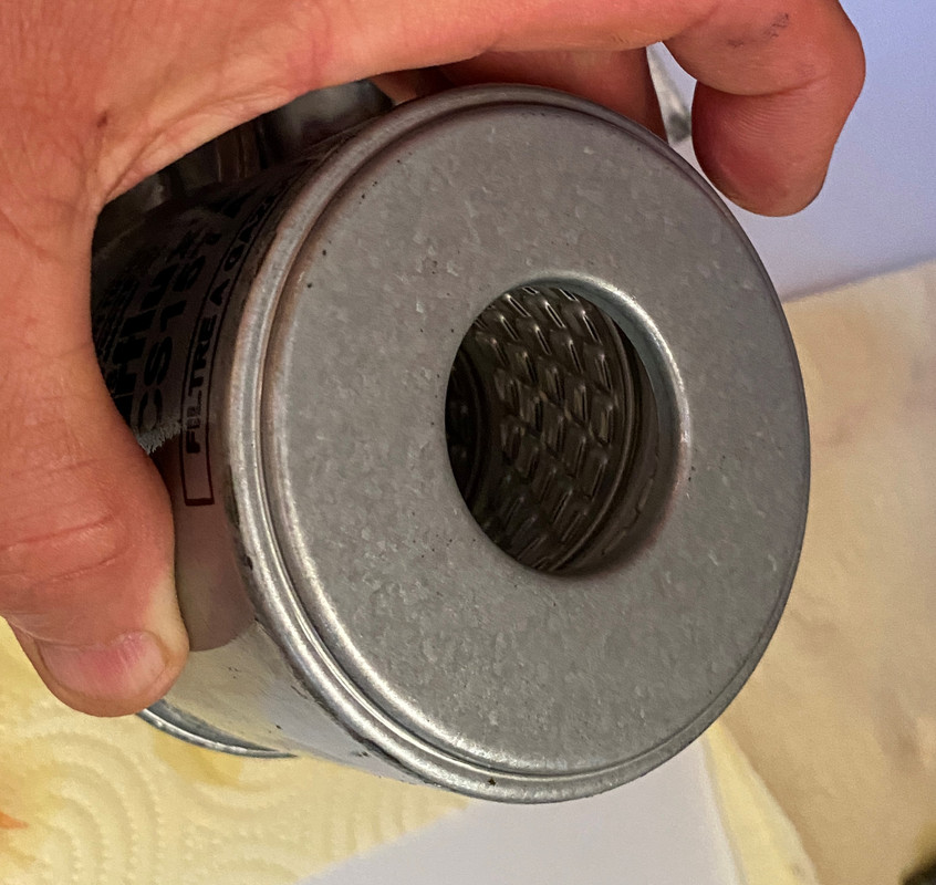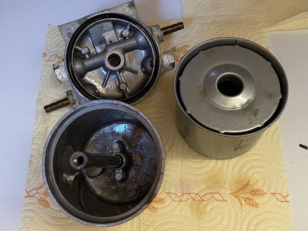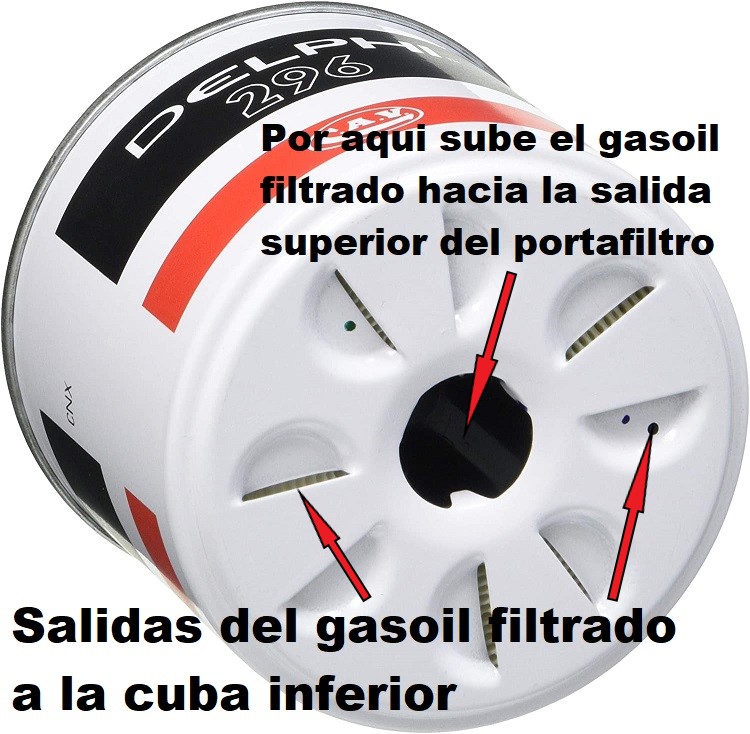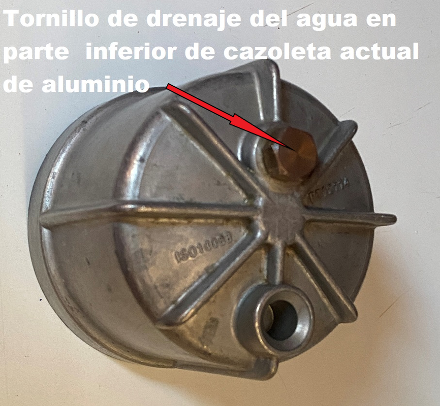 El pre-filtro se había cambiado en abril de 2021, es decir, hace dos años y un mes y aproximadamente 200 horas de motor. El fabricante indica el cambio del pre-filtro de gasoil cada 200 horas o cada año. Lo que voy a indicar continuación es una opinión personal y no estoy animando a no seguir las instrucciones del fabricante. Simplemente expongo como lo hago yo y el razonamiento de por qué lo hago así. Dado que el filtro no se deteriora con el tiempo, no parece lógico establecer un periodo temporal para el cambio del mismo, es decir, indicar el cambio cada año independientemente de las horas de motor parece que no tiene mucho sentido. Sin embargo, un aspecto a tener también en cuenta es el hecho de que al cambiarlo, el estado del filtro nos aporta información de como tenemos el gasoil y el depósito, y este conocimiento es importante tenerlo, aunque se utilice gasoil de confianza y se tengan las precauciones ya comentadas para evitar el agua y las bacterias en el gasoil. Esta información podemos también tenerla sin necesidad de cambiar el filtro si la cazoleta inferior del porta-filtro es transparente. El porta-filtro actual tiene la cazoleta inferior de aluminio: https://i.postimg.cc/qqNn6jdV/DSC-0060.jpg Al realizar el cambio cada dos años (o 200 horas), para tener la información comentada sobre el estado del gasoil y el agua decantada entre cambios, voy a aprovechar la sustitución del prefiltro para cambiar la cazoleta inferior de aluminio actual por una de vidrio, que permite tener esa informacion visual en cualquier momento. Es mejor el vidrio que el plástico trasparente pues éste amarillea y se pone opaco con el tiempo En este modelo no es necesario cambiar todo el porta-filtro. Por 22 € se puede comprar por separado la cazoleta de cristal y el tornillo de sujección con el de vaciado del agua en una tienda especializada en filtros https://i.postimg.cc/5NFLx738/IMG-1141.jpg Por lo comentado, usando gasoil de calidad, la norma que sigo para el cambio del pre-filtro es cada 200 horas o cada dos años, lo que ocurra primero. Hay varias configuraciones de pre-filtros, el que estaba instalado funciona según el siguiente esquema: https://i.postimg.cc/8CbL27b3/Esquem...e-gasolina.jpg El gasoil entra por una ranura perimetral en la parte superior y atraviesa las paredes laterales del elemento filtrante desde el exterior hacia el conducto interior por el que sube, ya filtrado, hacia la salida del porta-filtro. https://i.postimg.cc/zvHbGvnq/IMG-1226-2.png https://i.postimg.cc/nVX0D12h/IMG-1227.jpg El nuevo, funciona según este otro esquema: En la parte superior del filtro hay una serie de aberturas por las que el gasoil entra hacia el elemento filtrante. El gasoil pasa a traves de éste y sale por las aberturas de la parte inferior del filtro hacia la cazoleta inferior. En la cazoleta decanta el agua que es mas pesada y se va al fondo. Se puede observar las entradas del filtro y la salida del gasoil ya filtrado en esta imagen de la parte superior del filtro: https://i.postimg.cc/gJk3mGS0/81-Wo-...-AC-SL1500.jpg Y en esta otra de la parte inferior se observan las salidas del gasoil filtrado a la cuba o cazoleta y el orificio central, alejado del fondo de la cuba por el que sube el gasoil filtrado: https://i.postimg.cc/Tw7gPBFJ/71-UBc...-AC-SL1500.jpg A mi particularmente me gusta algo más este segundo sistema porque me parece que el agua se decanta más fácilmente hacia la cazoleta inferior. CONTINUA EN OTRO POST |
