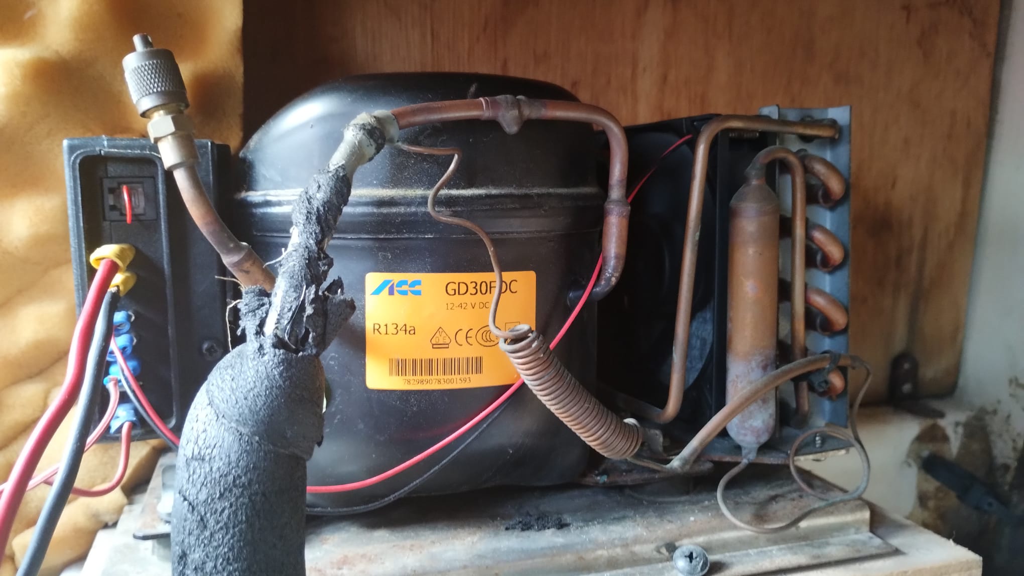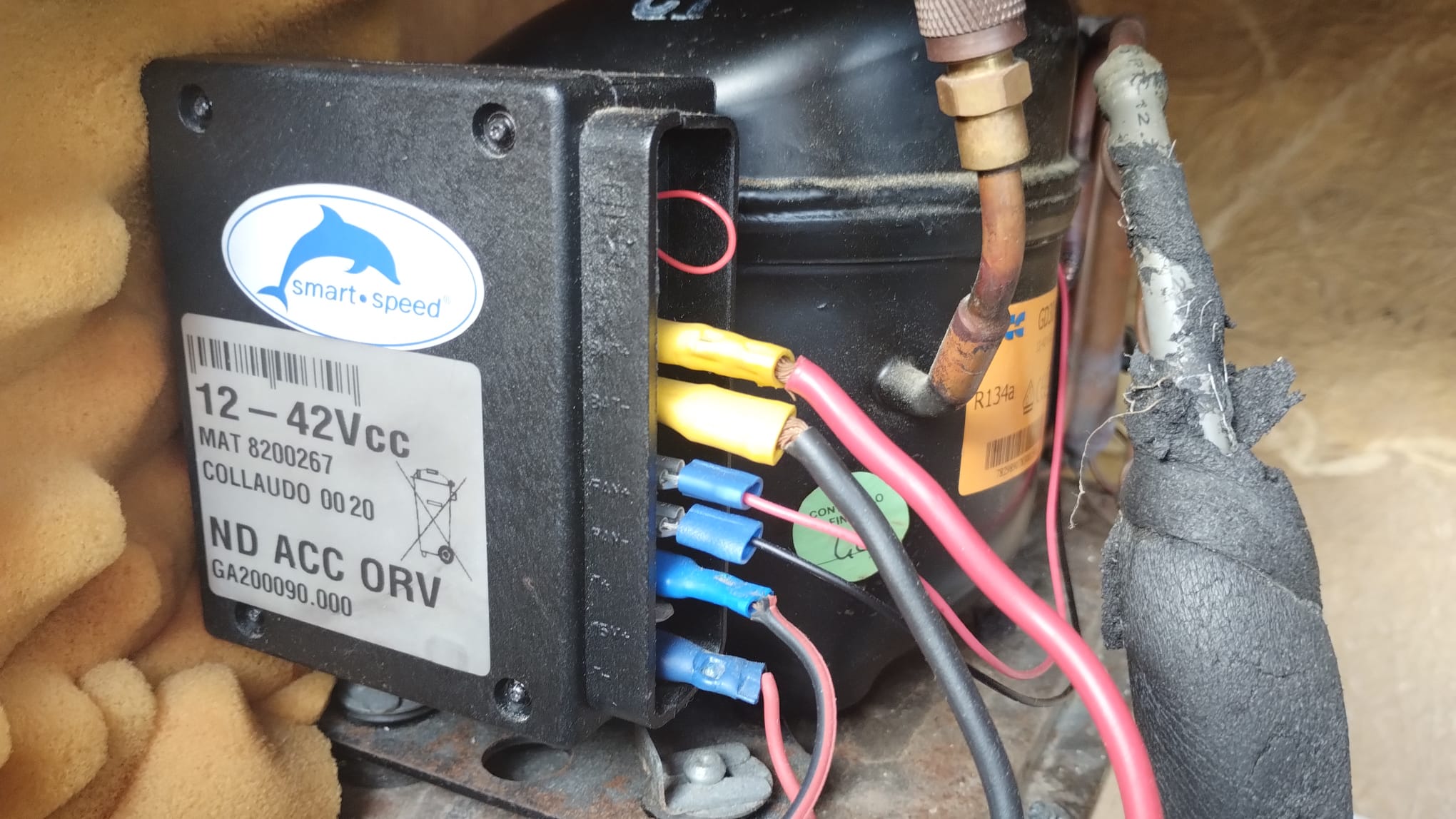 Ahora voy a adjuntar algunas fotos en este mismo post para que se vea el tipo de compresor y placa a ver si entre todos sacamos algo ... El cable es de buena sección y tiene pues te diré que unos dos o tres metros hasta las baterias, las cuales son nuevas AGM de hace un año. Las controlo con el NASA y a parte estoy conectado a puerto y tengo placa solar. Así que por potencia no creo que sea. Al final voy a mirar de pelar el cable positivo ( el que cuando saco y vuelvo a poner, siempre funciona ) aunque luego se apaga a ver que no sea que el conector esta tonto ... porque ya no entiendo ... pensaba que podría ser que le falta gas ... pero si enfria la placa y se pone durita ... como que congela no creo que sea falta de gas ... Ah ! el ventilador siempre que el compresor funciona, el ventilador también ... Bueno voy a publicar las fotos ... Gracias Salut y millas Tomaquet |