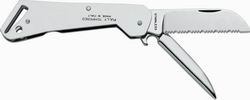 Tengo una Wichard con abregrilletes incorporado en el mango y hoja dentada. Inoxidable. Pesa poco y corta de maravilla. Un defectazo que lo es de la marca: no tiene seguro. Me metí un tajo que casi me cuesta el dedo :cunao::cunao::cunao: