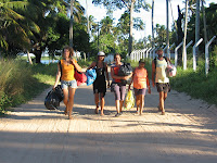 He conocido a Martha y os voy a explicar cosas de ella porque creo que las personas deben saber que tipo de personaje es el que lleva el cotarro. Uf, será un poco culebrón, eh? Martha, es la chica coordinadora de Correos de la Mar) es una chica super energética, que ha pasado por una traqueotomía (si lo comento es por que la conozco y a ella no le importa que la gente lo sepa), se echo es evidente, cuando la ves. Está de baja (quizás para siempre), entonces todo su tiempo lo dedica plenamente a Correos de la Mar. Lava toda la ropa en su casa, revisa prenda por prenda y juguete por juguete, para que esté en condiciones. Los clasifica en: bebe, niño/niña, joven chica/joven chico, mujer/hombre, señor/señora, zapatos niño/niña, zapatos mujer/hombre....etc, superclasificado. También hace unas bolsas de cosas de teatro, material sanitario, escolar y juguetes (que no vayan con pilas) Tiene un almacén y la casa llena de bolsas para enviar, solo le faltan los transportistas. Los contactos en los países pobres son personas totalmente dedicadas a las personas y al compromiso voluntario de que las personas que más lo necesitan reciban este material. Martha no le interesa que solo lo lleven y punto. Le gusta saber que se hace en el centro, como se reparte, que criterios utilizan, que actividades o entorno hay. Por un lado porque se preocupa por todo aquello en lo que ha estado trabajando y por otro para saber las necesidades del lugar. También quiere dejar bien claro a los contactos que los veleros no traen regalos, que ellos son los mediadores del material, pero que no por ver un velero va a traer ofrendas, sinó que existen algunos veleros que, de forma voluntaria, ofrecen el servicio de repartir el material de la asociación. No quiere que los locales relacionen el echo de que lleves velero traigas cosas para dar, porque no quiere entrar en conflicto con divergencias o crear prejuicios. Y ahora os explico mi experiencia personal. Estuve en casa de Martha ayudándola a hacer bolsas. También estaba Thaïs y Loic ayudándola y ellos además tenían un espacio para trabajar el inox y la madera. Nosotros queríamos repartir en Casamance y Salvador de Bahía, pero por cuestiones imprevisibles, de tiempo y mar, los paquetes de Casamance se dejaron en la asociación de Cabo Verde y los de Salvador de Bahía en Ribeira- Cabedelo. Le expliqué a Martha los cambios, y le parecieron geniales, dado que es parte de lo que puede pasar, yendo en velero. Así es que en Ribera hicimos un nuevo contacto entre el Clube Adventure, la directora de la escuela y la doctora. Creo que fué muy bien escogido, porque el estado de Paraiba es el más pobre de todo Brasil y el que aún puede conservar un poco de autenticidad (no hay los problemas de crack, ni delincuencia, ni robos...como en los otros estados brasileros) y, aún siendo más pobres, la gente realmente es humilde y muy agradable. Cuando le comenté a la directora que llevábamos cosas de teatro, casi se pone a llorar, porque dijo que les encantaba hacer obras con los niños y que muchas cosas las hacian con tapones de fanta, plasticos que encontraban...o sea reciclado. Bueno, no sé...creo que todo llegó a su destino y que está en buenas manos. Me siento contenta y pienso que estas personas tienen muchas cosas a enseñarnos a nosotros. Quiero hacerles una reverencia por tener esa simplicidad, autenticidad, dedicación y compromiso con la vida!!!:cid5: |