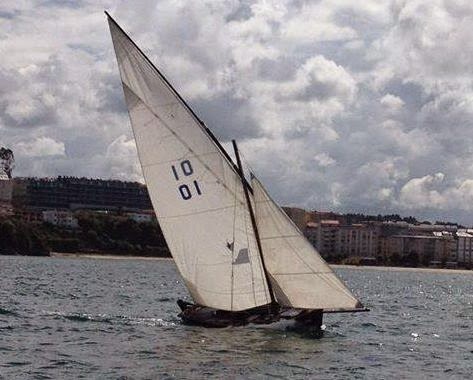 La vela que veo en estas fotos es una variante de la latina que en el Mediterráneo llamamos "de martillo" o "mística". La vela no es triangular, la parte del puño de car se trunca verticalmente y tiene un puño adicional, el de amura. En vuestro caso, veo martillos bastante más grandes de los que tenemos nosotros (el mío debe tener unos 30 cm solamente); en los botes de Ribadeo también he visto martillos grandes.