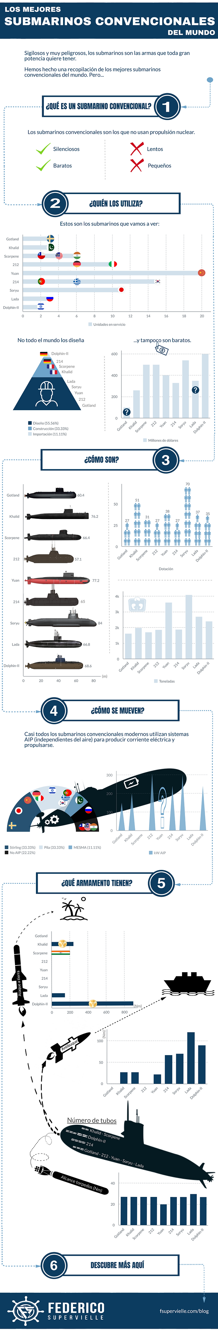 He decidido aprovechar el confinamiento para estudiar un poco los mejores submarinos convencionales que hay por ahí y me ha salido un artículo curioso. Dejo el enlace, la introducción y una infografía con la comparativa para el que le interese.