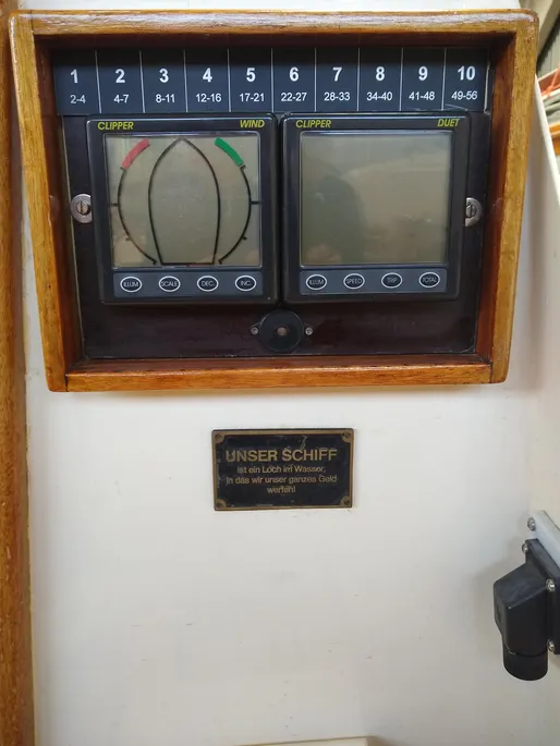Una placa en un barco de recreo, espero haberla traducido bien, estaba en alemán.