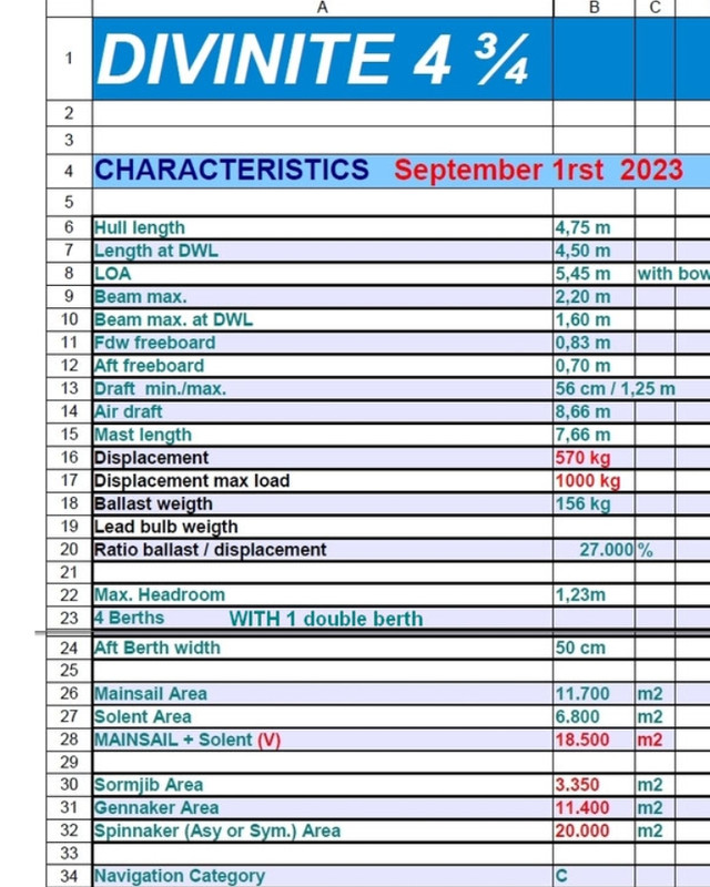![]() dice ... Desplazamiento 570 kilos Qué entienden los franceses por "Desplazamiento" es un enigma insondable, y por otro lado Lastre 150 kg parece escasillo, Total: digamos un más realista 750 kg + 250 kg de carga que no es carga porque no es "pay load" = 1000 kilos, lo que pone como carga máxima 1 Tonelada es el carguero de 0,0 Toneladas Que agota su capacidad de carga en el tripulante, su ropa, sus bocadillos y sus cervezas 1 Tonelada no hay torero que se la salte en los botes Lastrados para crucero ya costero ya con pretensiones oceánicas |