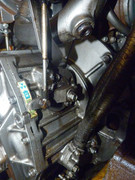 Aunque no se aprecia demasiado bien en la foto, parece que en ese sector se hallan los cables que accionan la marcha avante y atras.