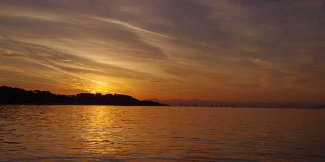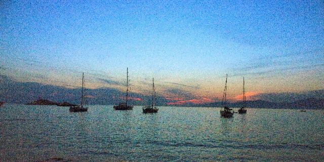 Afortunadamente nuestra auxiliar tiene un potente motor que nos lleva al puerto viejo y nos permite saltar a tierra y ver la puesta de sol ( hoy un tanto descafeinada).