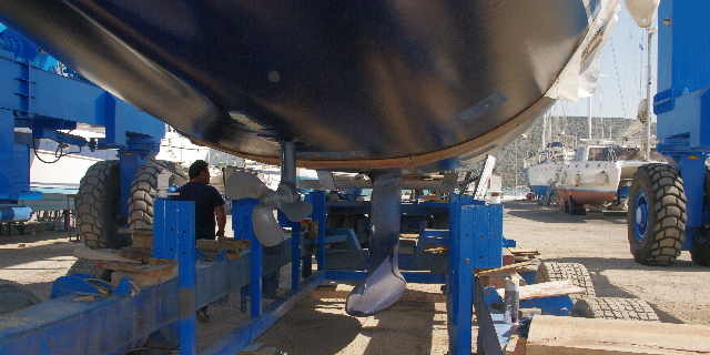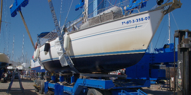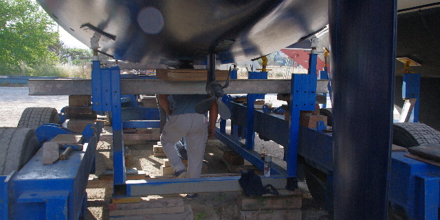 El barco ha dormido sobre una cuna de acero. Ha secado la obra viva durante ocho meses y ha sido pintado de acuerdo a nuestras instrucciones, así que solo resta devolverlo al agua.