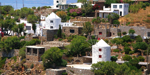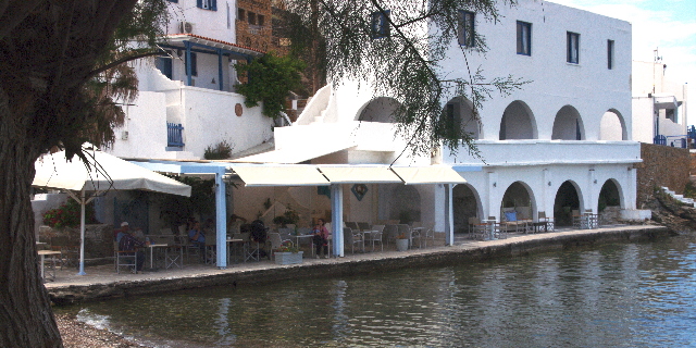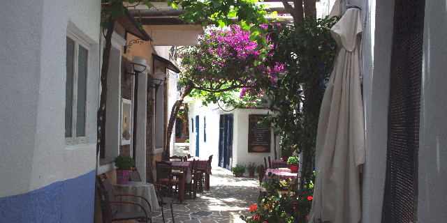 El pueblo tiene un tamaño muy asequible un istmo que cierra la parte del puerto destinada a los ferrys nos conduce hasta un inacabado templo al dios Baco.