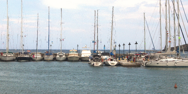 Aquí estan reservados para determinadas empresas de charter y nos " sugiere", que volvamos al día siguiente a las ocho de la mañana a hacer cola a ver si puede darnos atraque por unas horas. Mientras tanto que nos busquemos la vida y fondeemos donde podamos.
