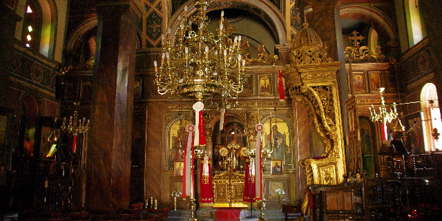 La ciudad se extiende por dos colinas. La primera de ellas coronada por una catedral ortodoxa, con su correspondiente cúpula azul.