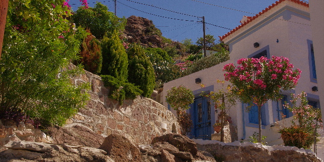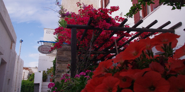 Y por todos lados las bugambilias y azaleas llenandolo todo de colorido, de ese colorido tan griego.