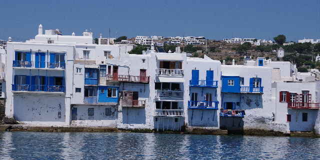 Que nadie me mal interprete. Admiro el trabajo que mis compañeros arquitectos de Mikonos han creado o recreado en este pueblo. Y sea natural o artificial hay que reconocer que la fachada al mar es de una gran fuerza estética.