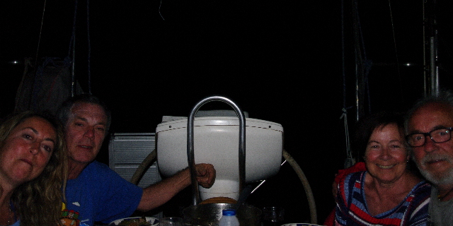 Volvemos al barco preocupados por una fuerte racha de viento y pensando en lo precario de nuestro amarre. Pero todo queda en este falso aviso. La tormenta se ve en la lejanía