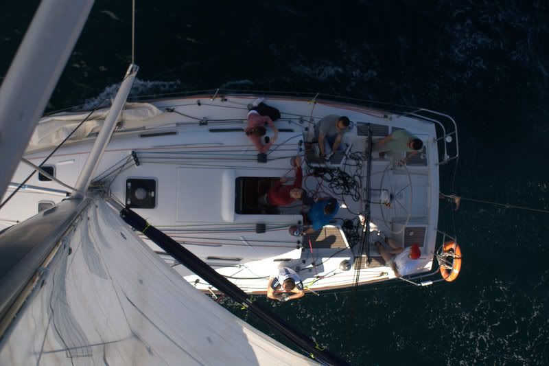 El jueves sali con unos amigos por la bahia de Algeciras en un First 36.7. viento flojito, 7, 8 nudos y una tarde soleada. Arnes y al palo a sacar unas afotos. Impresiona estar alli arriba e ingeniartelas para agarrate al palo y poder sacar las fotos.